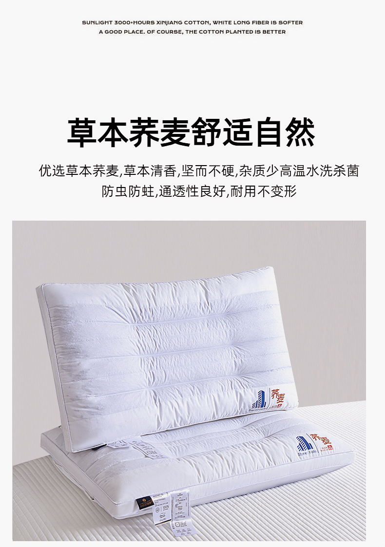 商品名称:全棉羽丝枕 护颈枕芯 全棉荞麦两用枕 全棉羽丝枕 全棉荞麦羽丝枕头