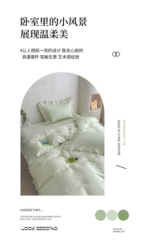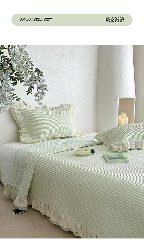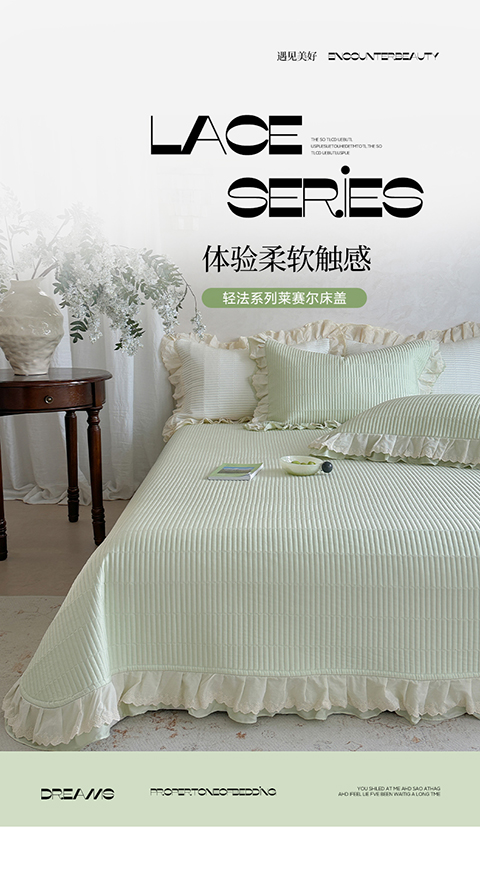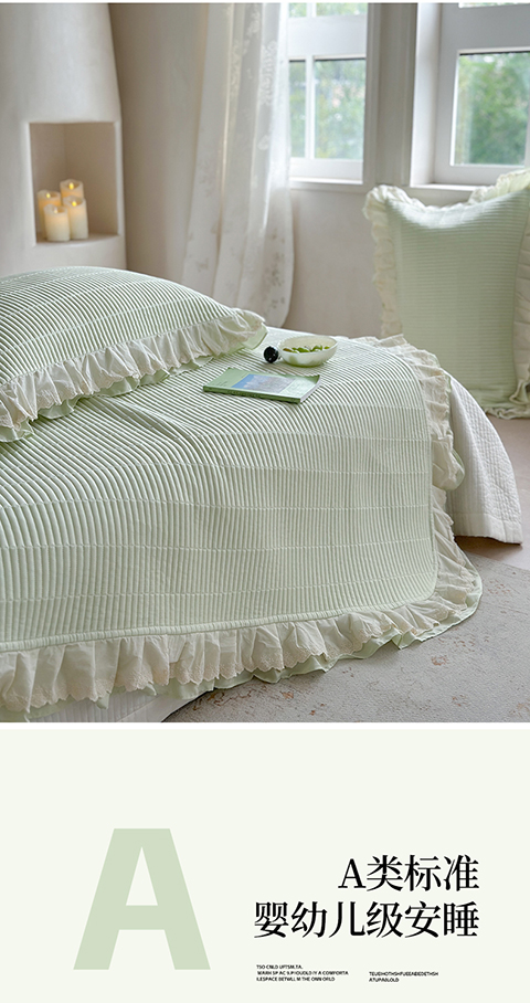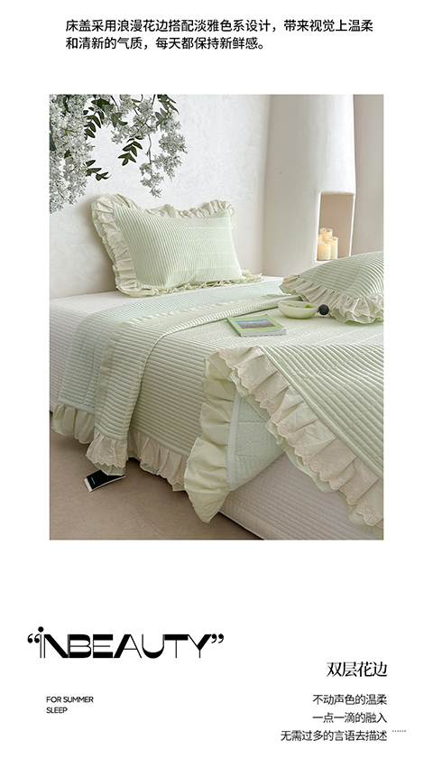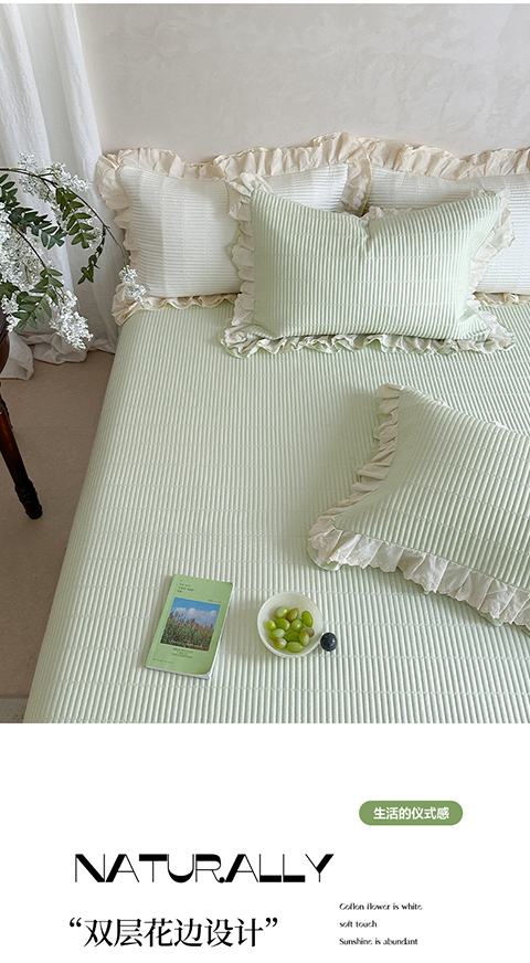 商品名称:琳可家居 2025新款轻法系列双层花边100%莱赛尔纤维床盖三件套可搭配同款被套(提供买家秀) 茶椰绿