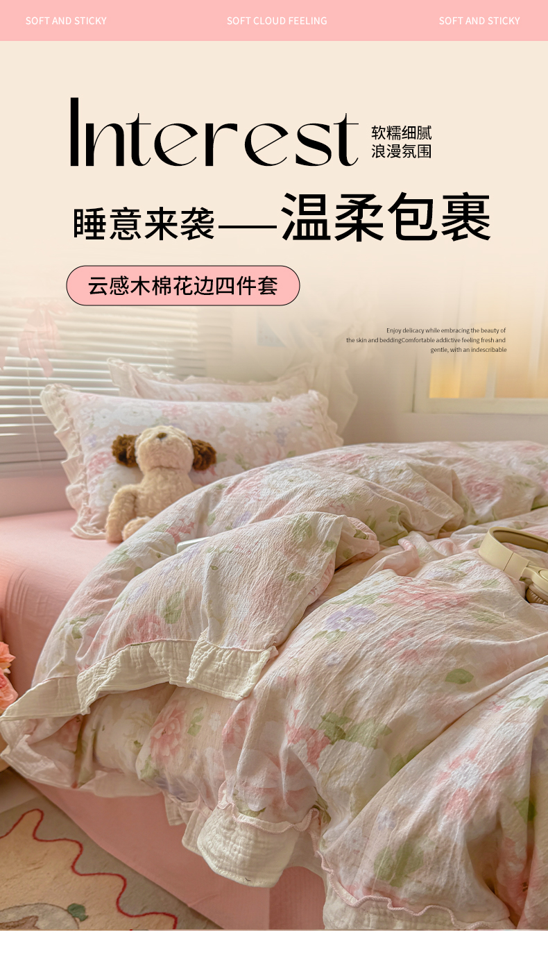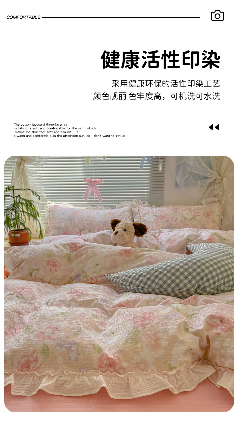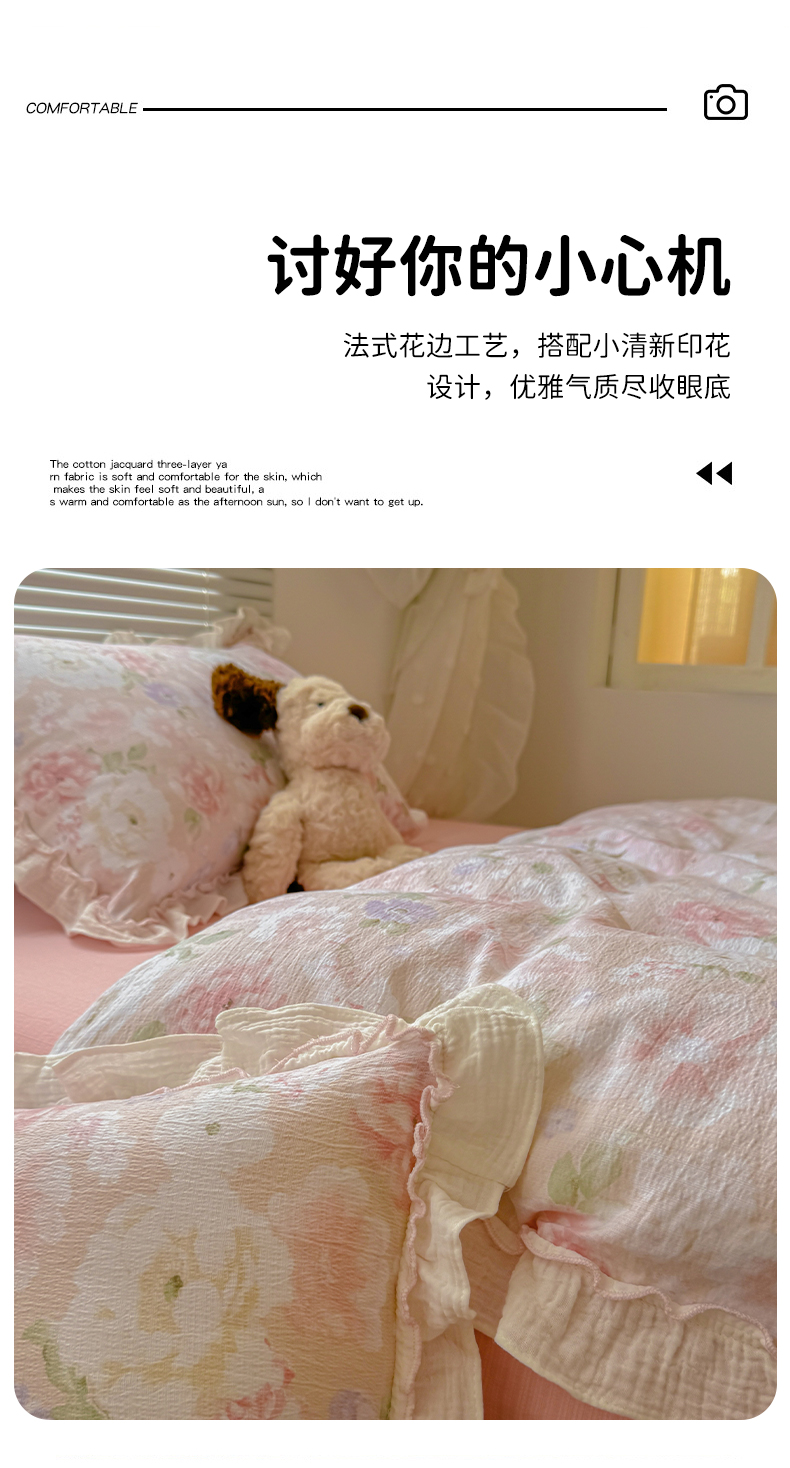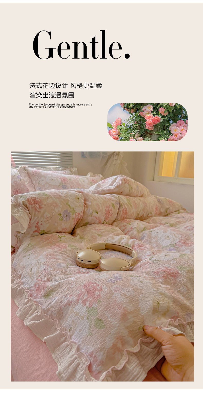 当前位置: 91家纺网 > 商品网购 > 床品套件 > 四件套 > 提花四件套 > 繁花家居 2025新款云感棉提花学生季超温柔小花边四件套 秋水伊人