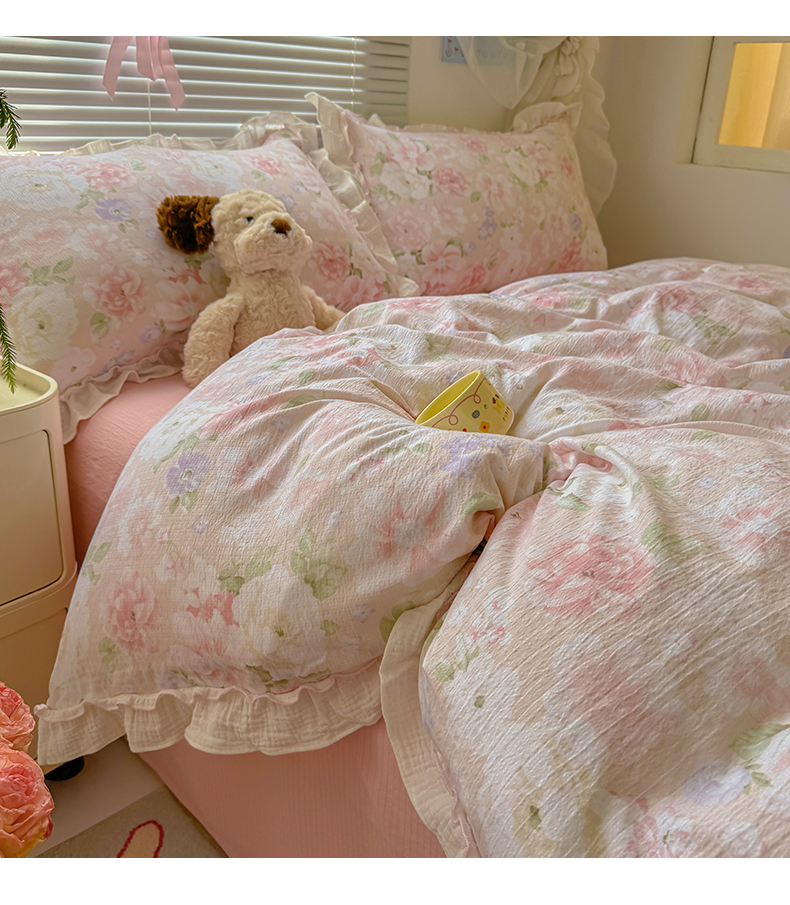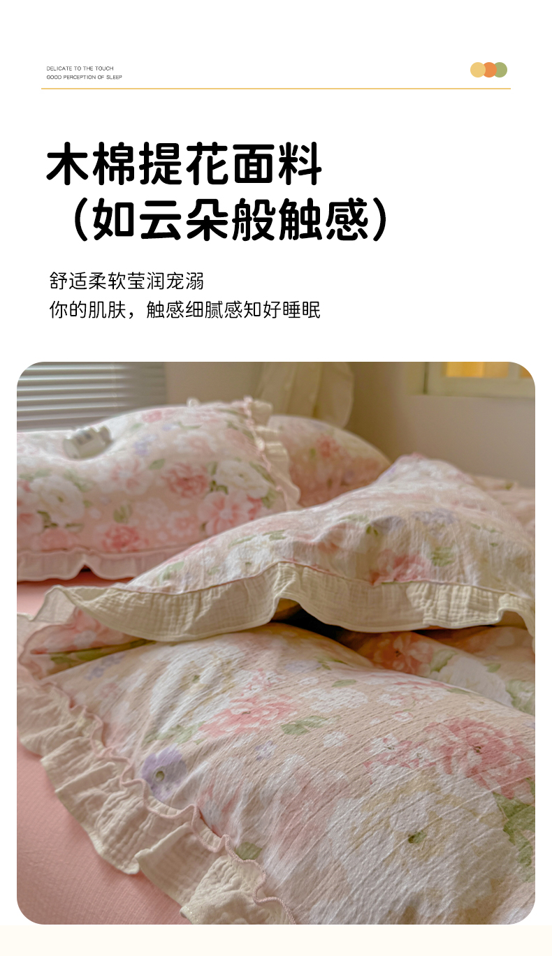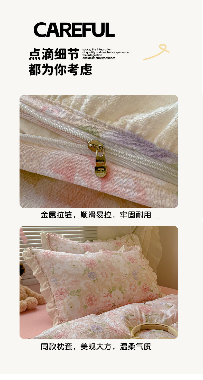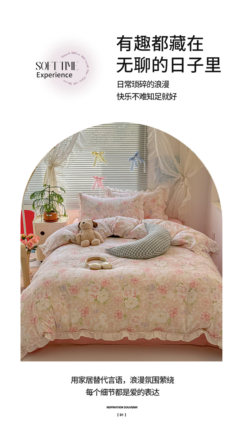 当前位置: 91家纺网 > 商品网购 > 床品套件 > 四件套 > 提花四件套 > 繁花家居 2025新款云感棉提花学生季超温柔小花边四件套 秋水伊人