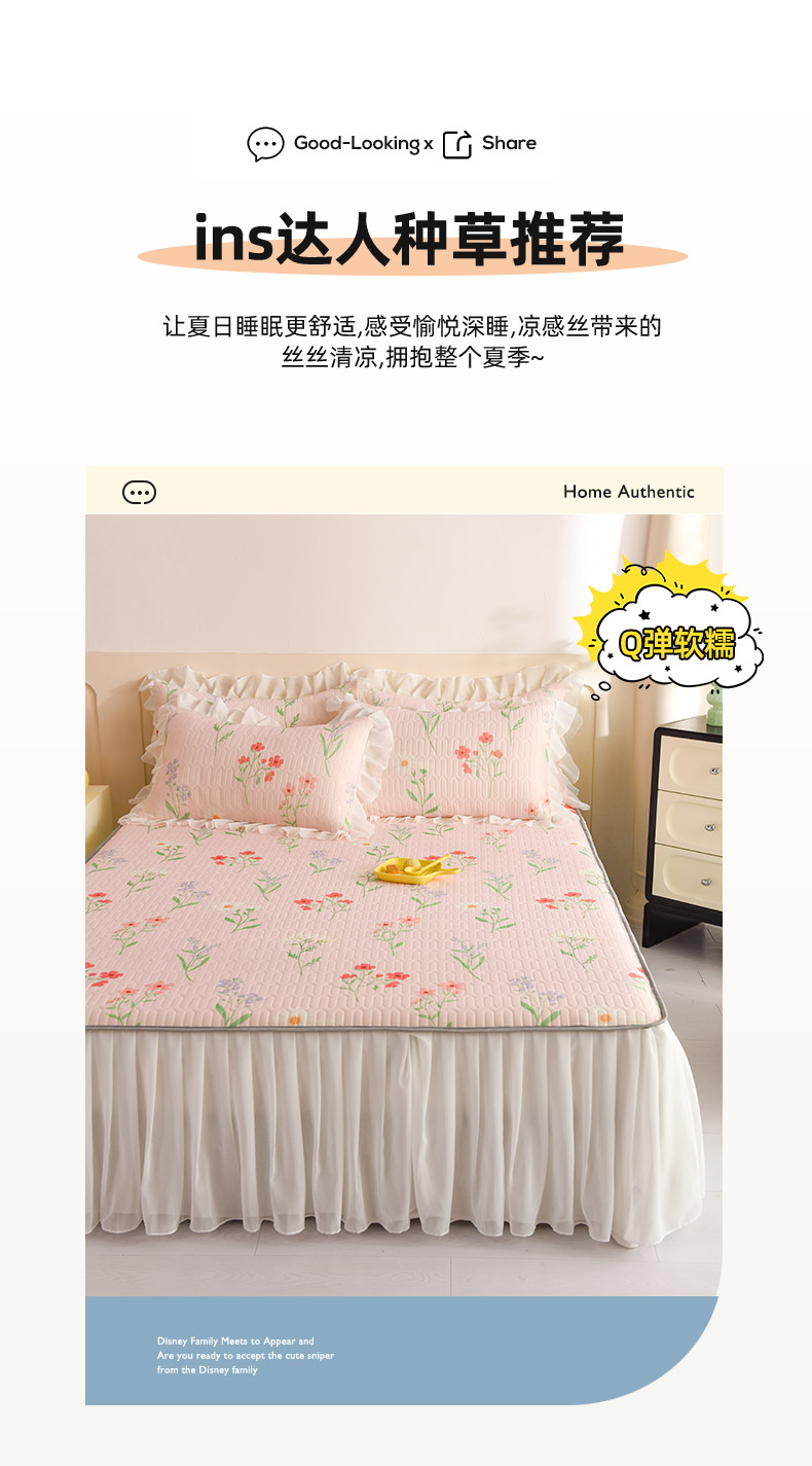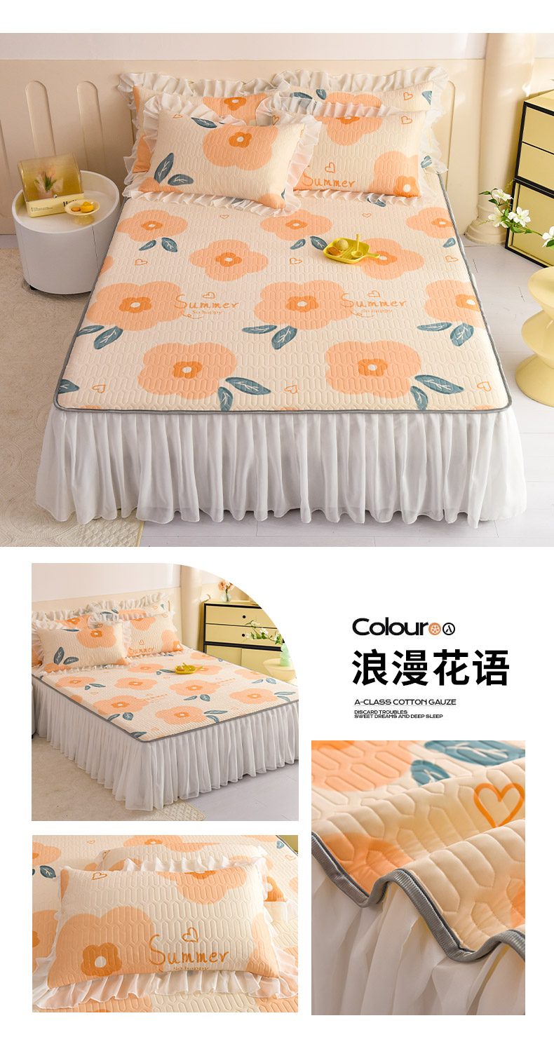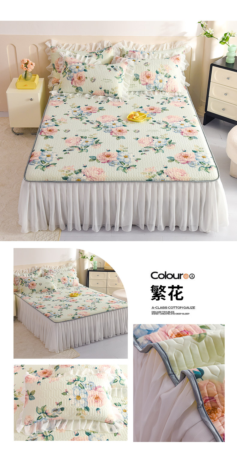 当前位置: 91家纺网 > 商品网购 > 床上用品 > 凉席 > 其他凉席 > 悦织湾家纺 2025新款A类0.5厚床裙款印花乳胶凉席三件套 花束