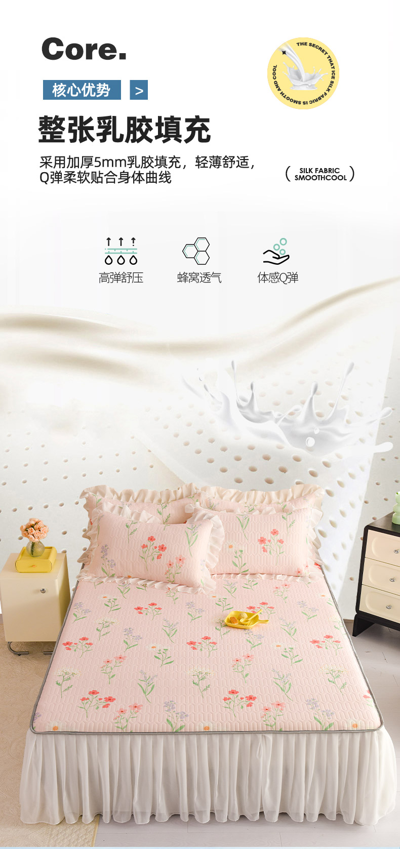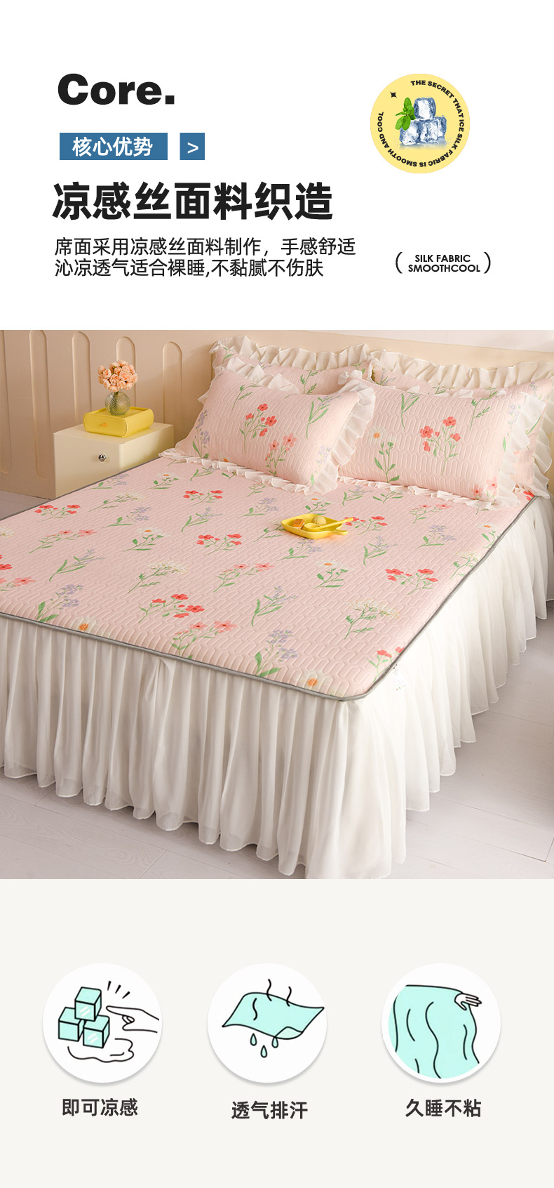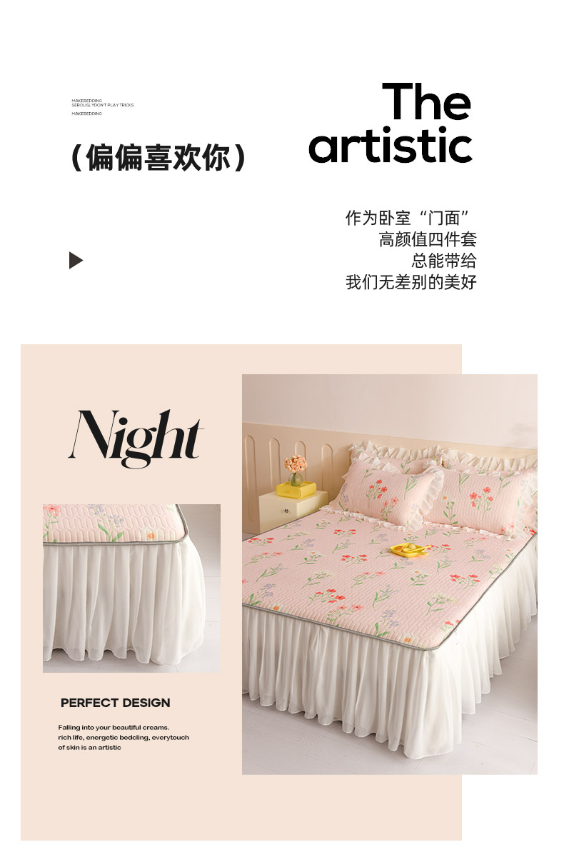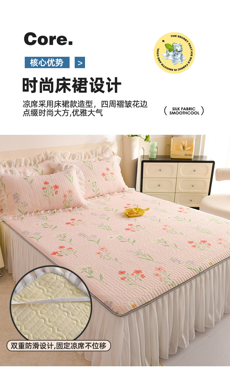 当前位置: 91家纺网 > 商品网购 > 床上用品 > 凉席 > 其他凉席 > 悦织湾家纺 2025新款A类0.5厚床裙款印花乳胶凉席三件套 花束