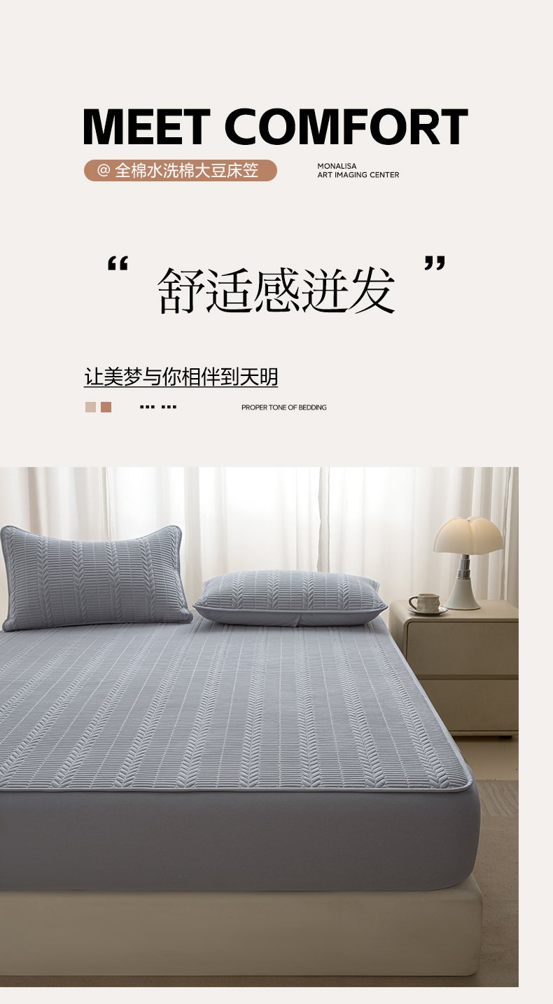 • 91家纺网 家纺一手货源 找家纺 芬晴家纺 2025新款全棉水洗棉大豆床笠-芳华 芳华-浅灰