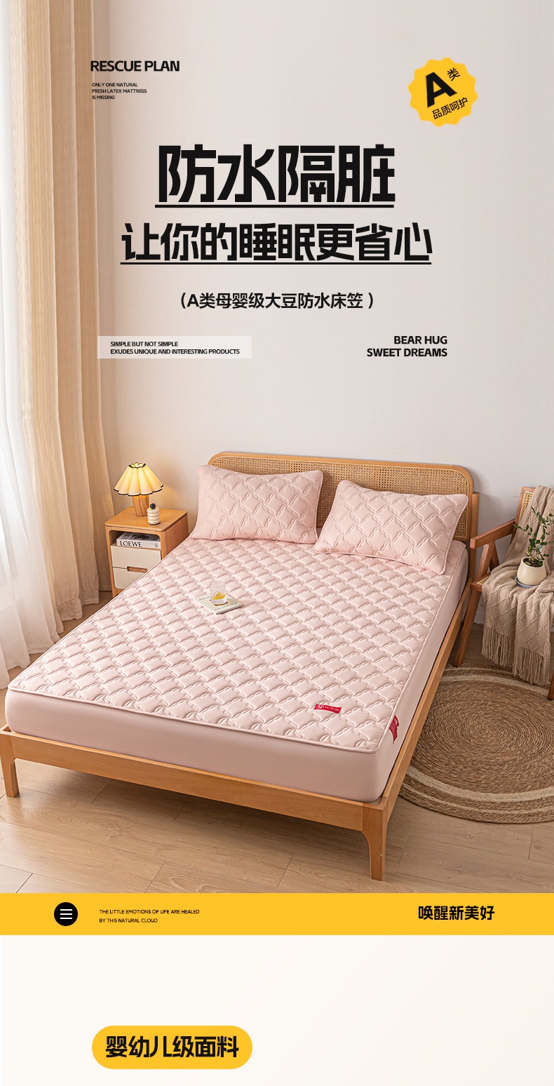 • 91家纺网 家纺一手货源 找家纺 芬晴家纺 2025新款母婴级大豆防水床笠-马丁-风车 风车-豆沙粉