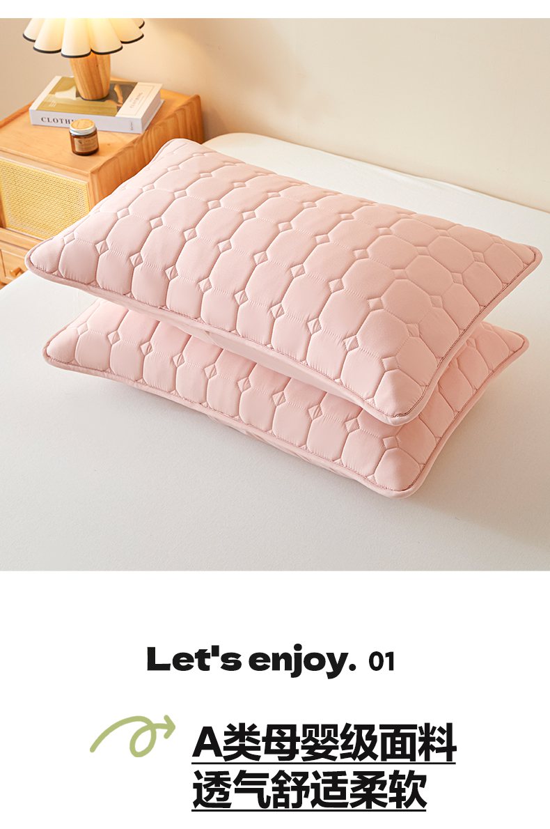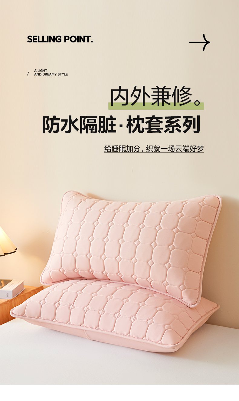 芬晴家纺 2025新款A类母婴级防水枕套系列 简格-豆沙粉