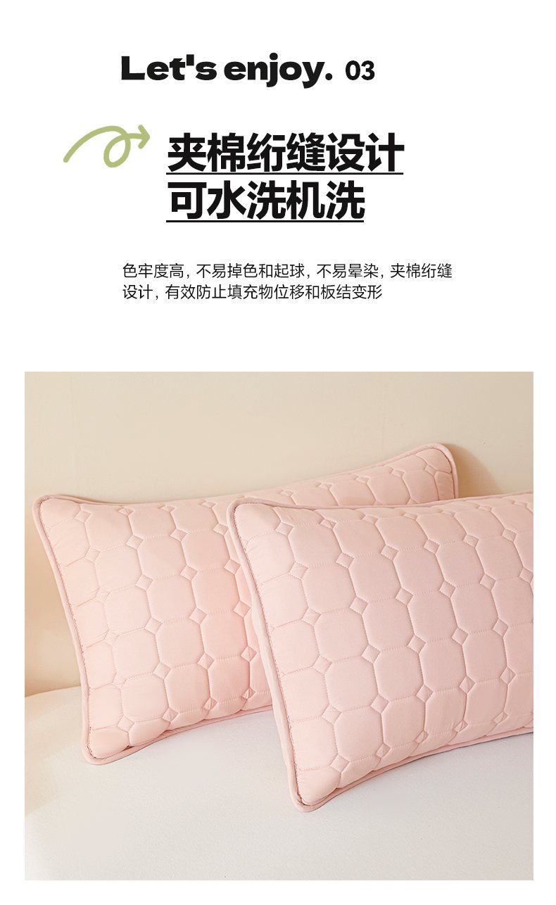 商品名称:芬晴家纺 2025新款A类母婴级防水枕套系列 简格-豆沙粉