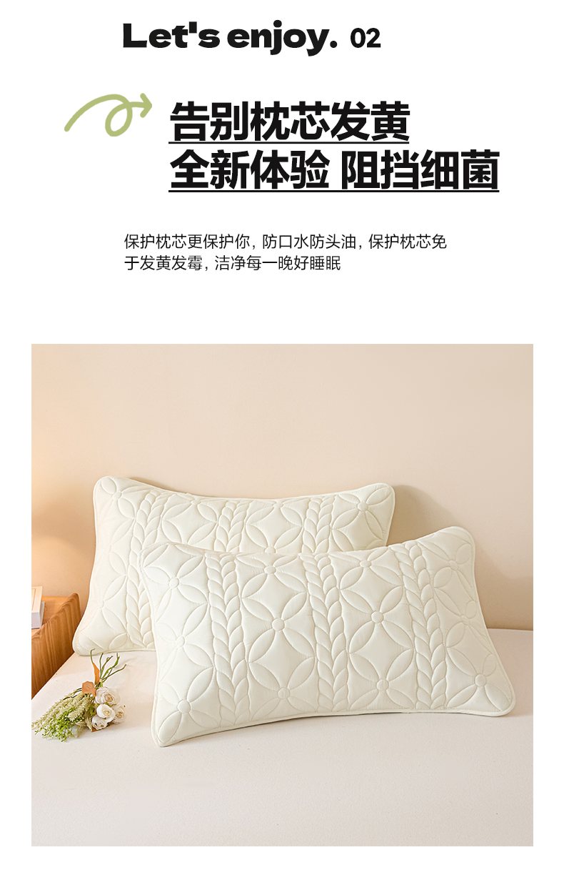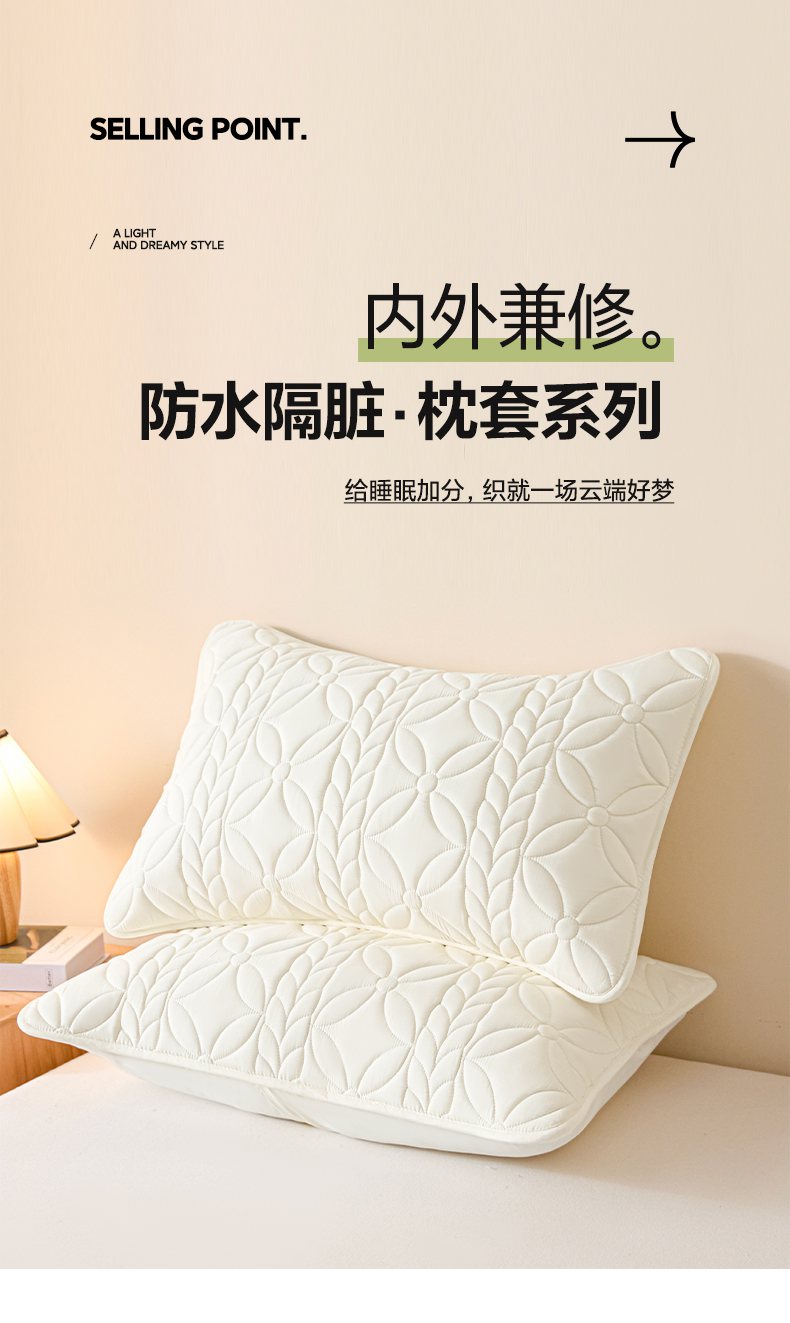 芬晴家纺 2025新款A类母婴级防水枕套系列 叶语-米白