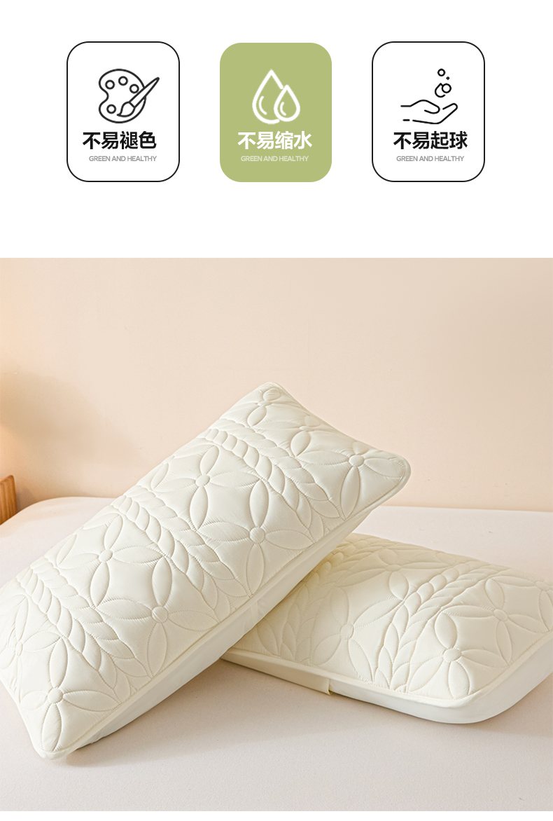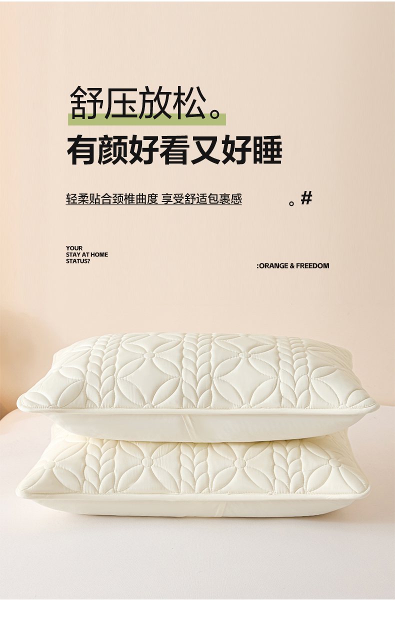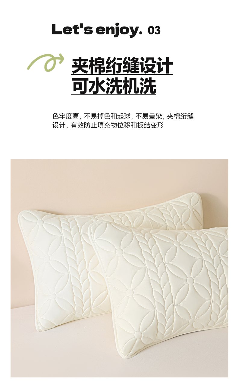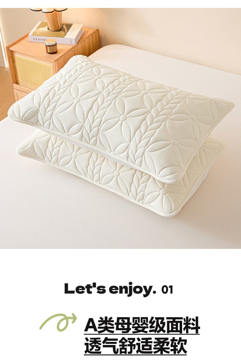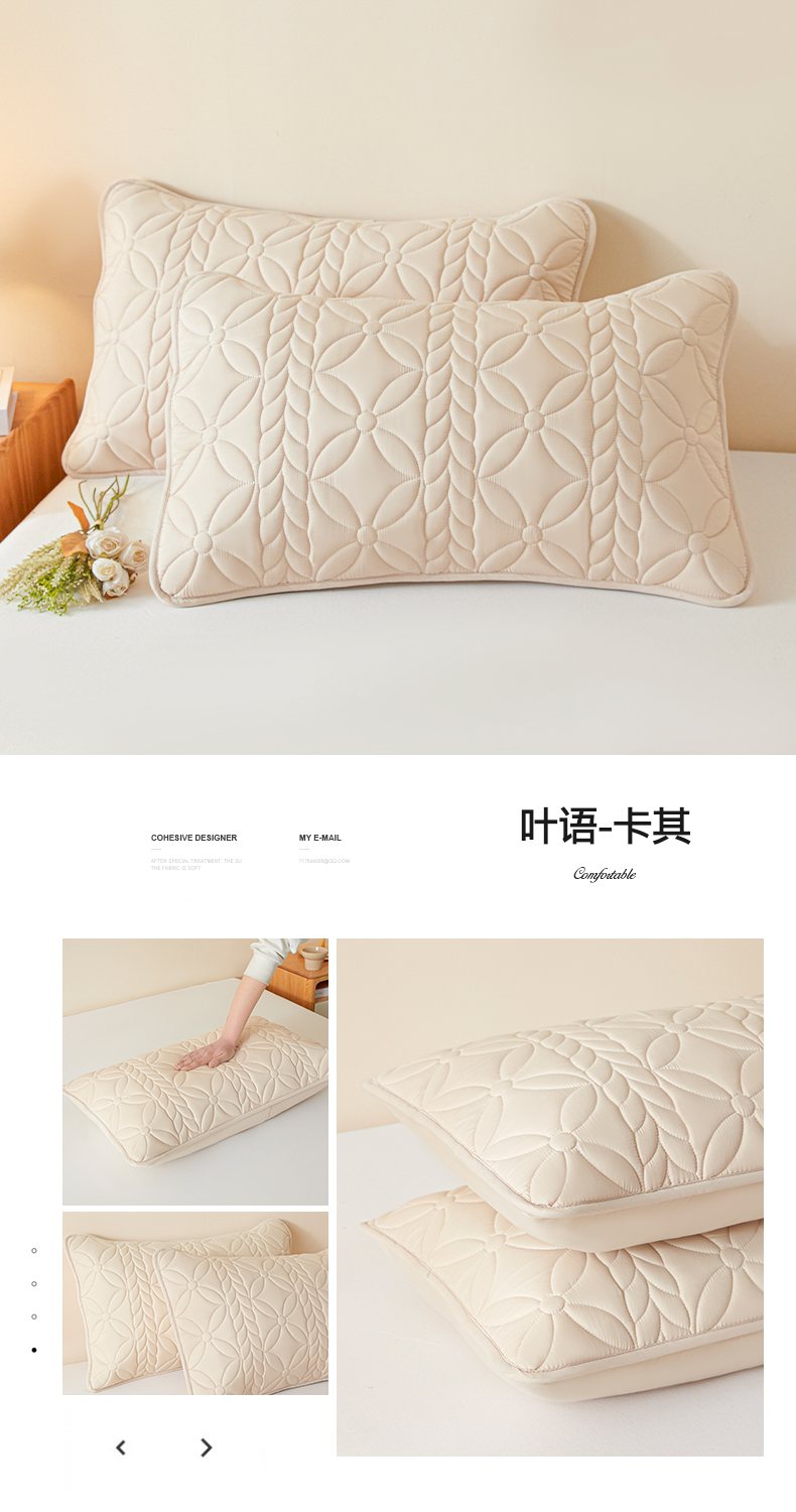 商品名称:芬晴家纺 2025新款A类母婴级防水枕套系列 叶语-米白