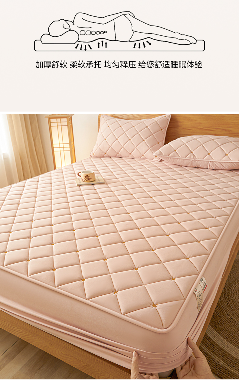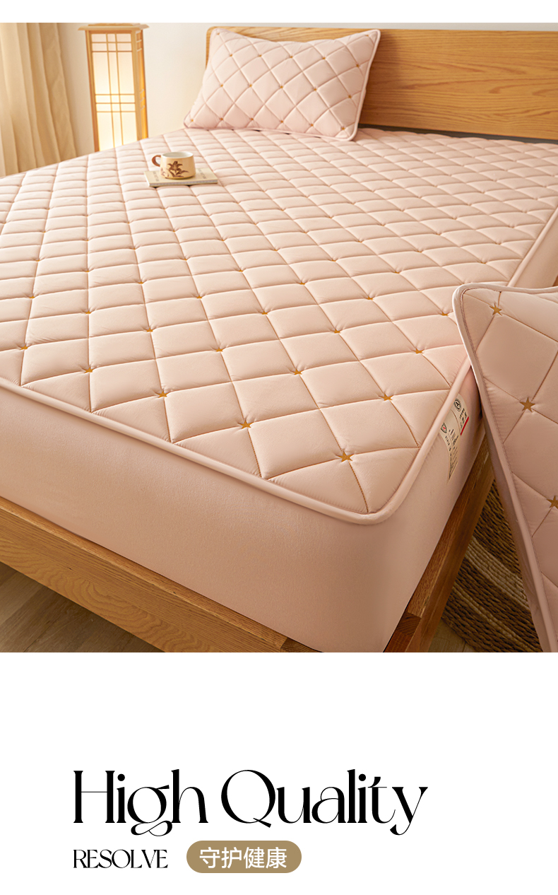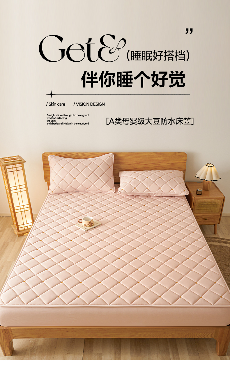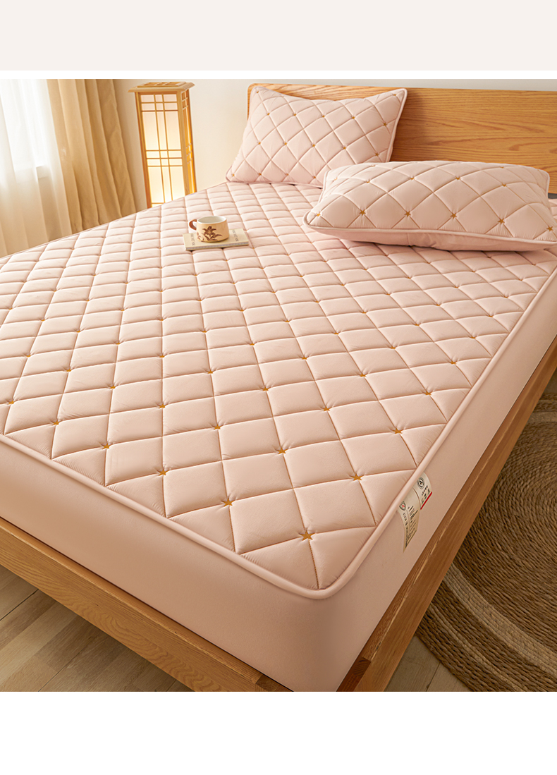 • 91家纺网 家纺一手货源 找家纺 芬晴家纺 2025新款A类母婴级大豆防水夹棉床笠-简爱-空间 空间-豆沙粉