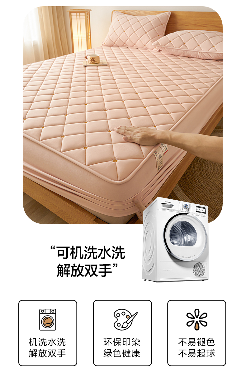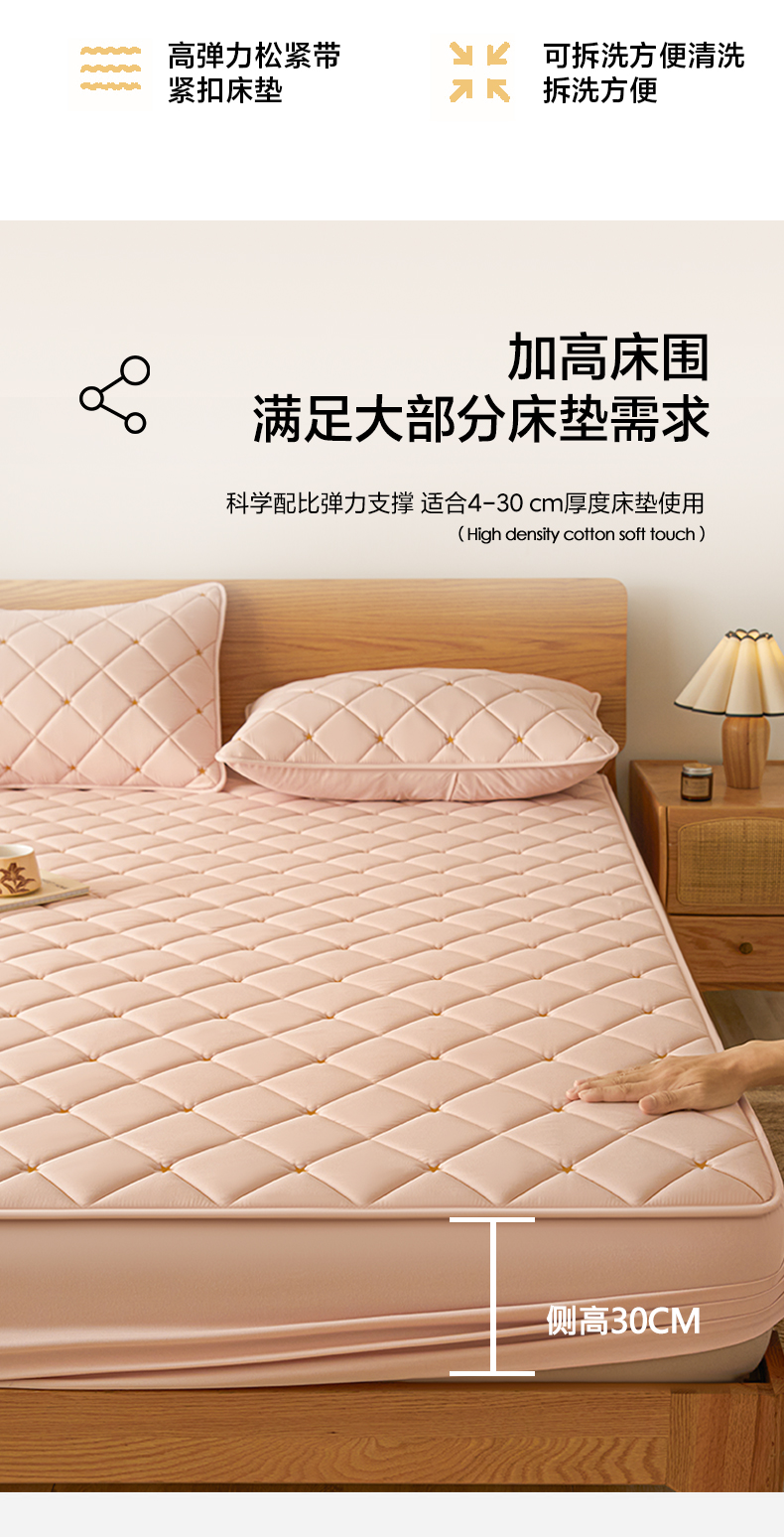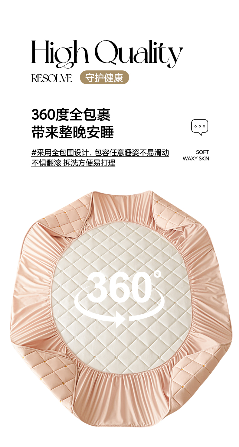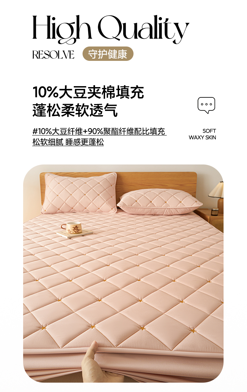 • 91家纺网 家纺一手货源 找家纺 芬晴家纺 2025新款A类母婴级大豆防水夹棉床笠-简爱-空间 空间-豆沙粉