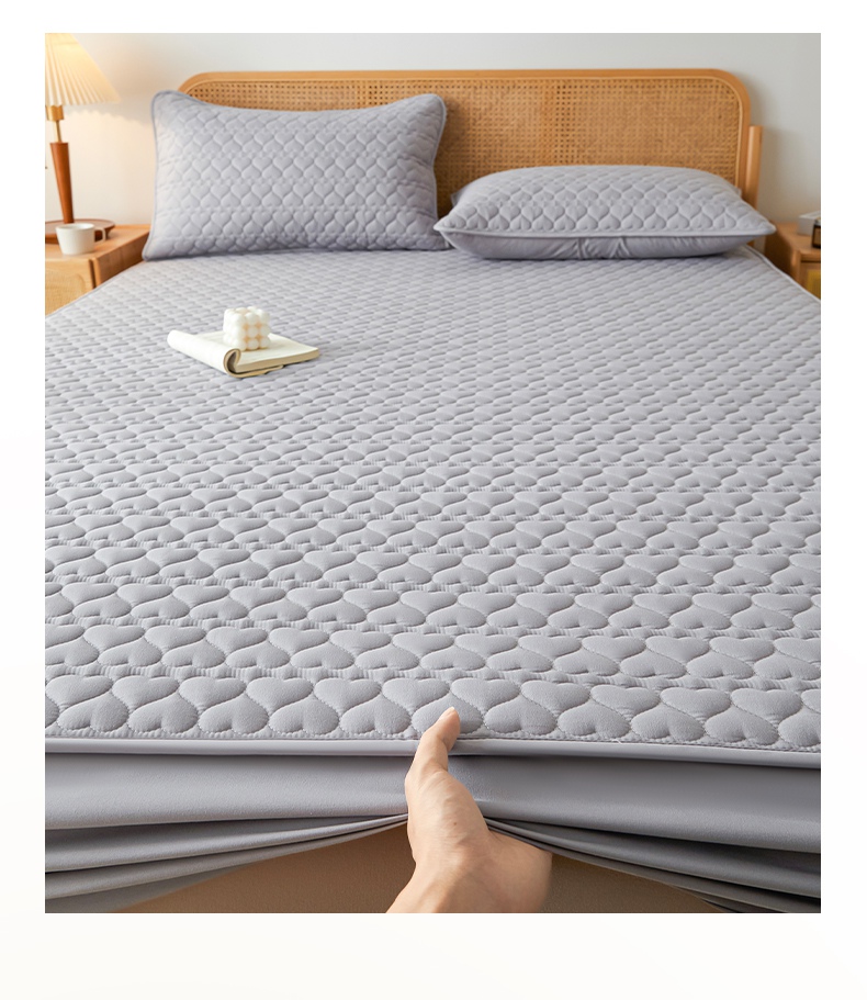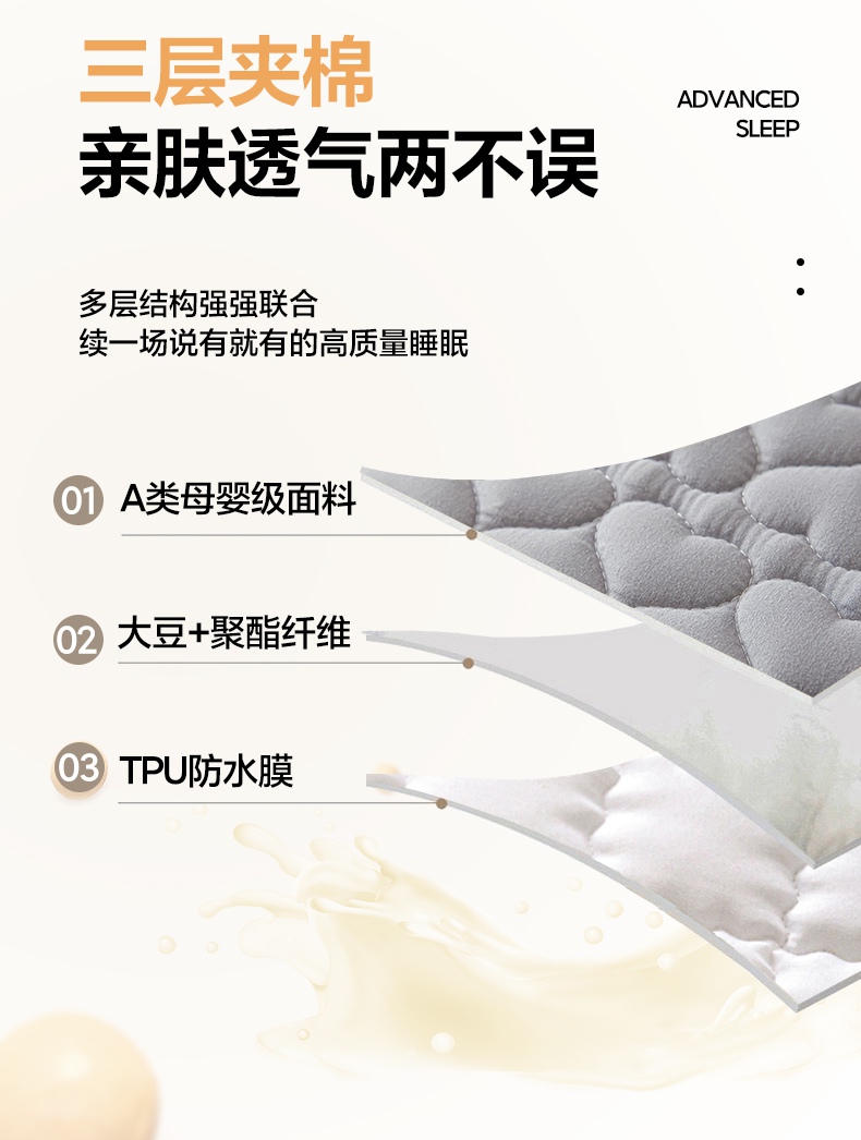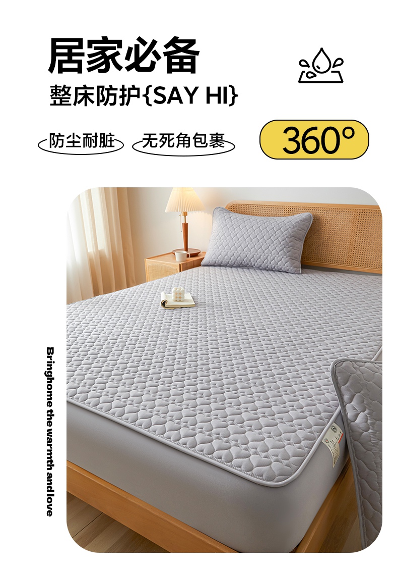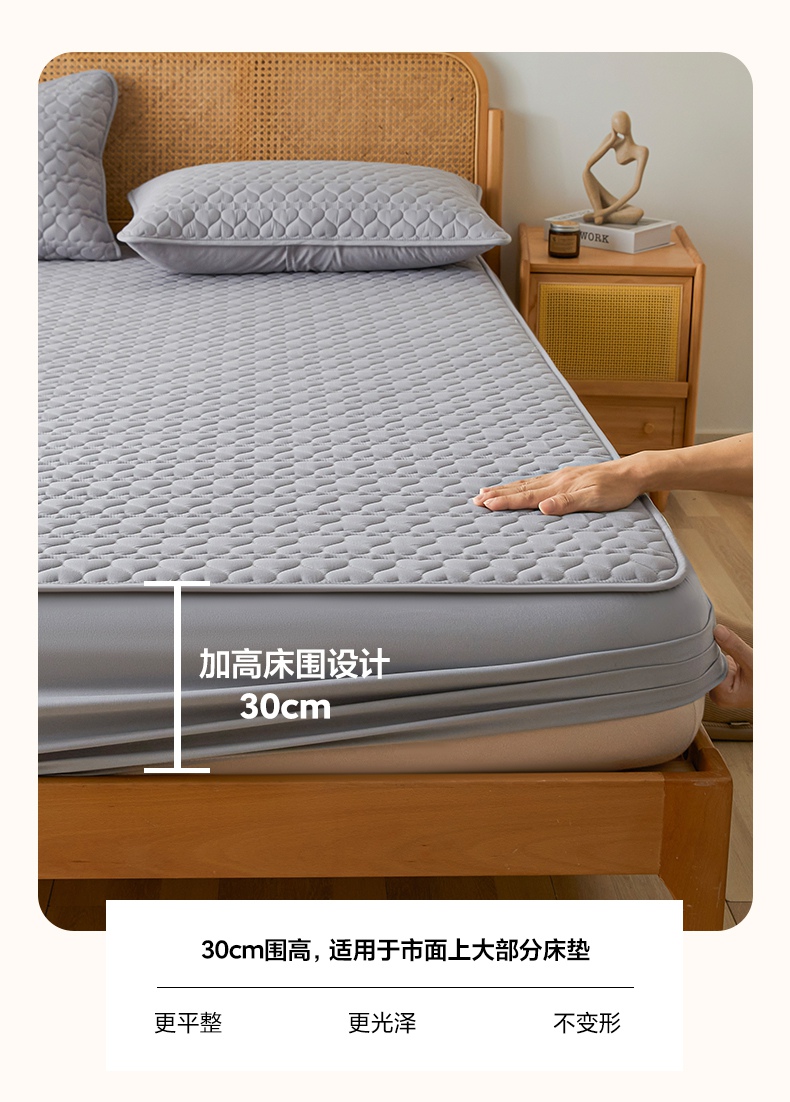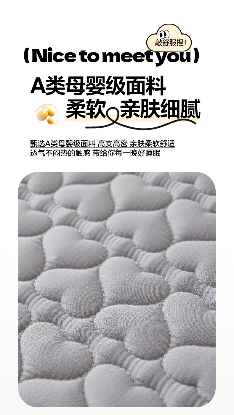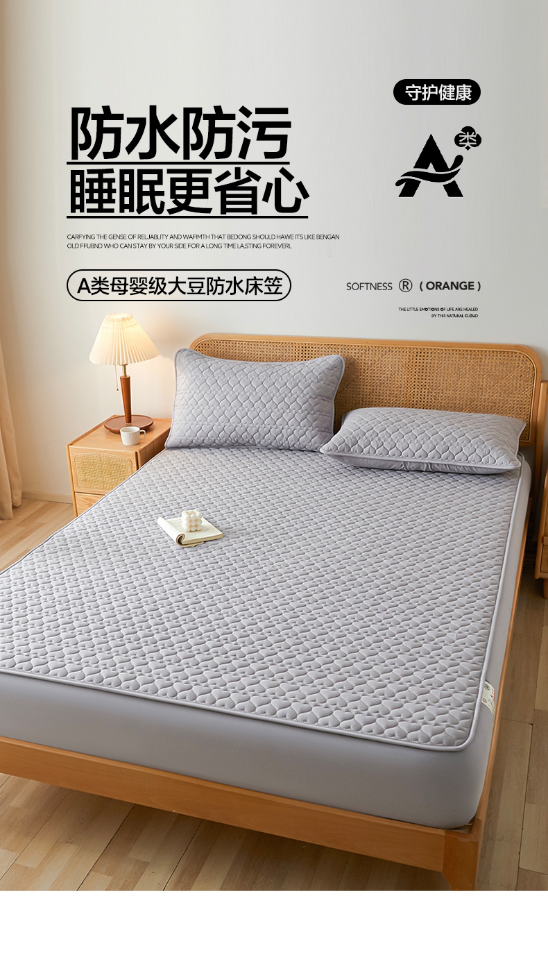 • 91家纺网 家纺一手货源 找家纺 芬晴家纺 2025新款A类母婴级大豆防水夹棉床笠系列-约定-心动-繁花 心动-星灰