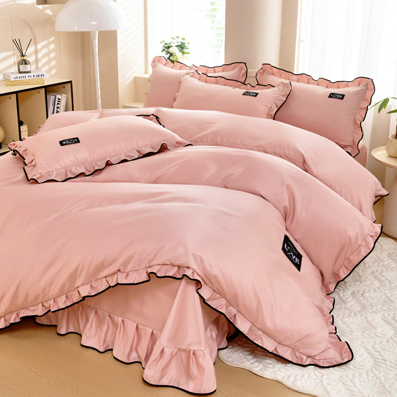 (总)找底底家纺 2022新款水晶绒蕾丝花边韩版四件套,大红,黛蓝,豆沙色,姜黄,墨绿,浅灰,玉女粉
