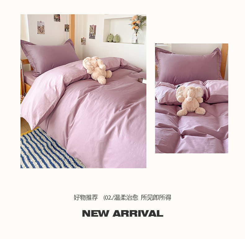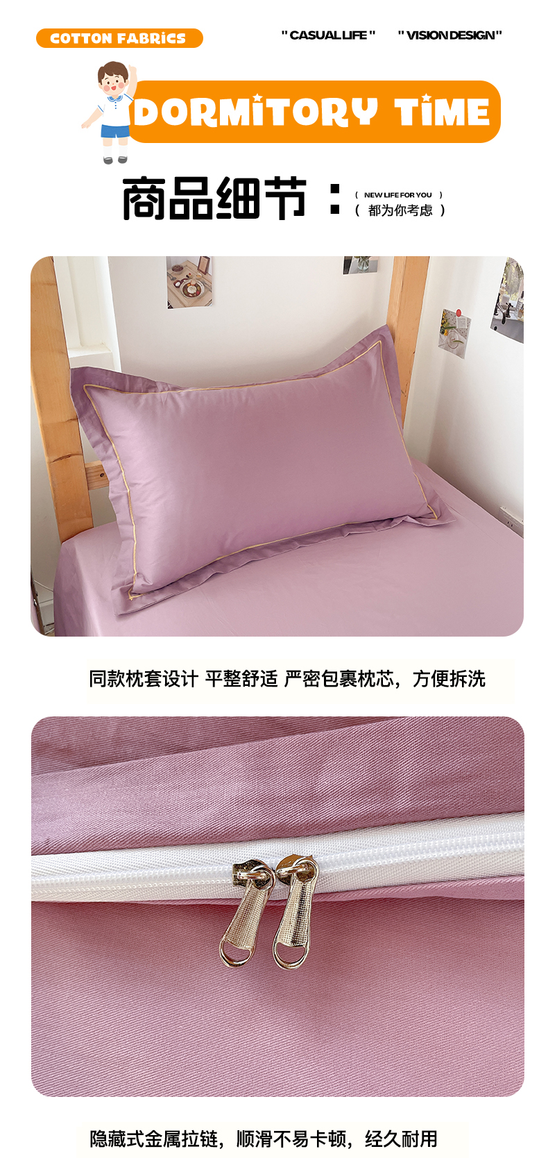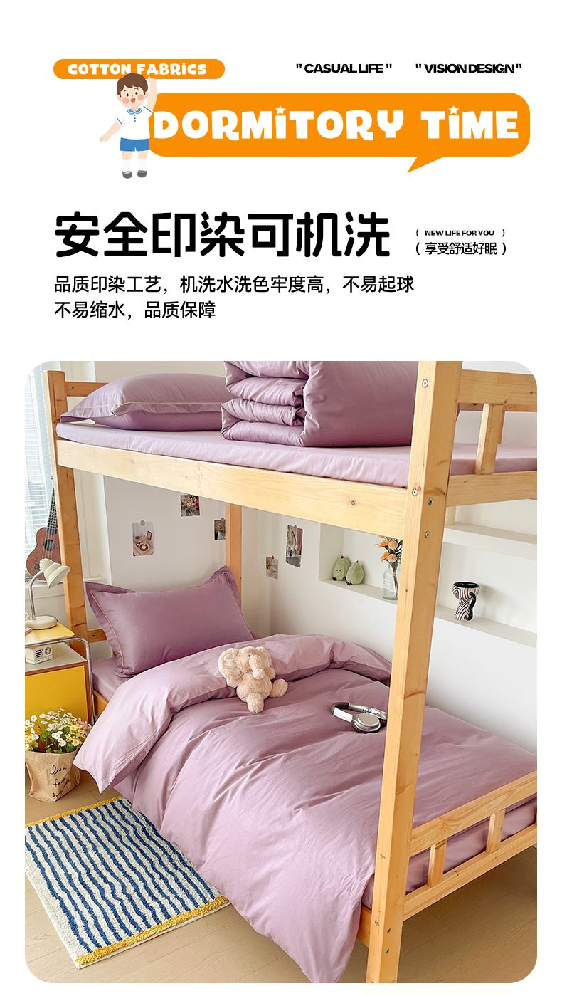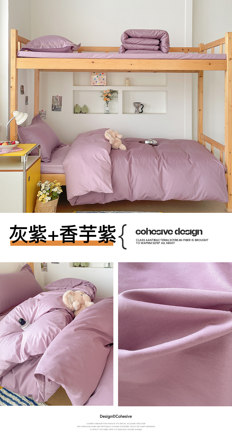 商品名称:恩泽家纺 2025新款全棉双拼学生宿舍三件套 灰紫+香芋紫