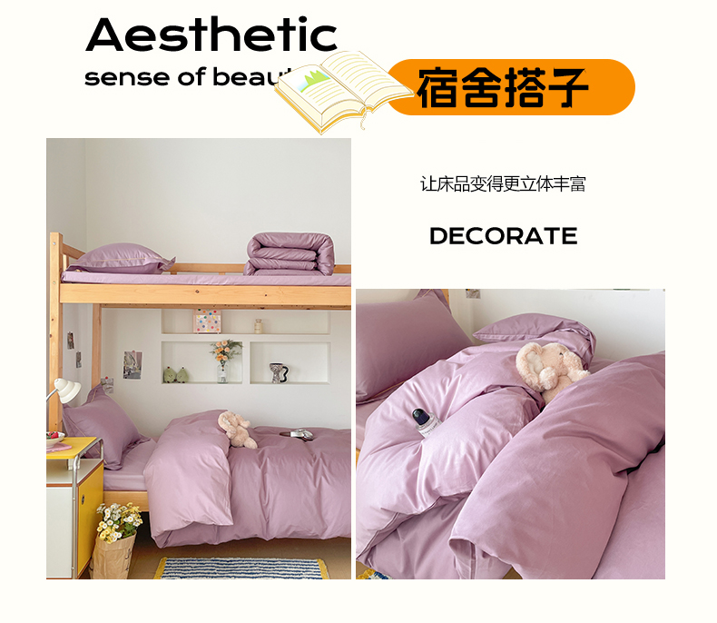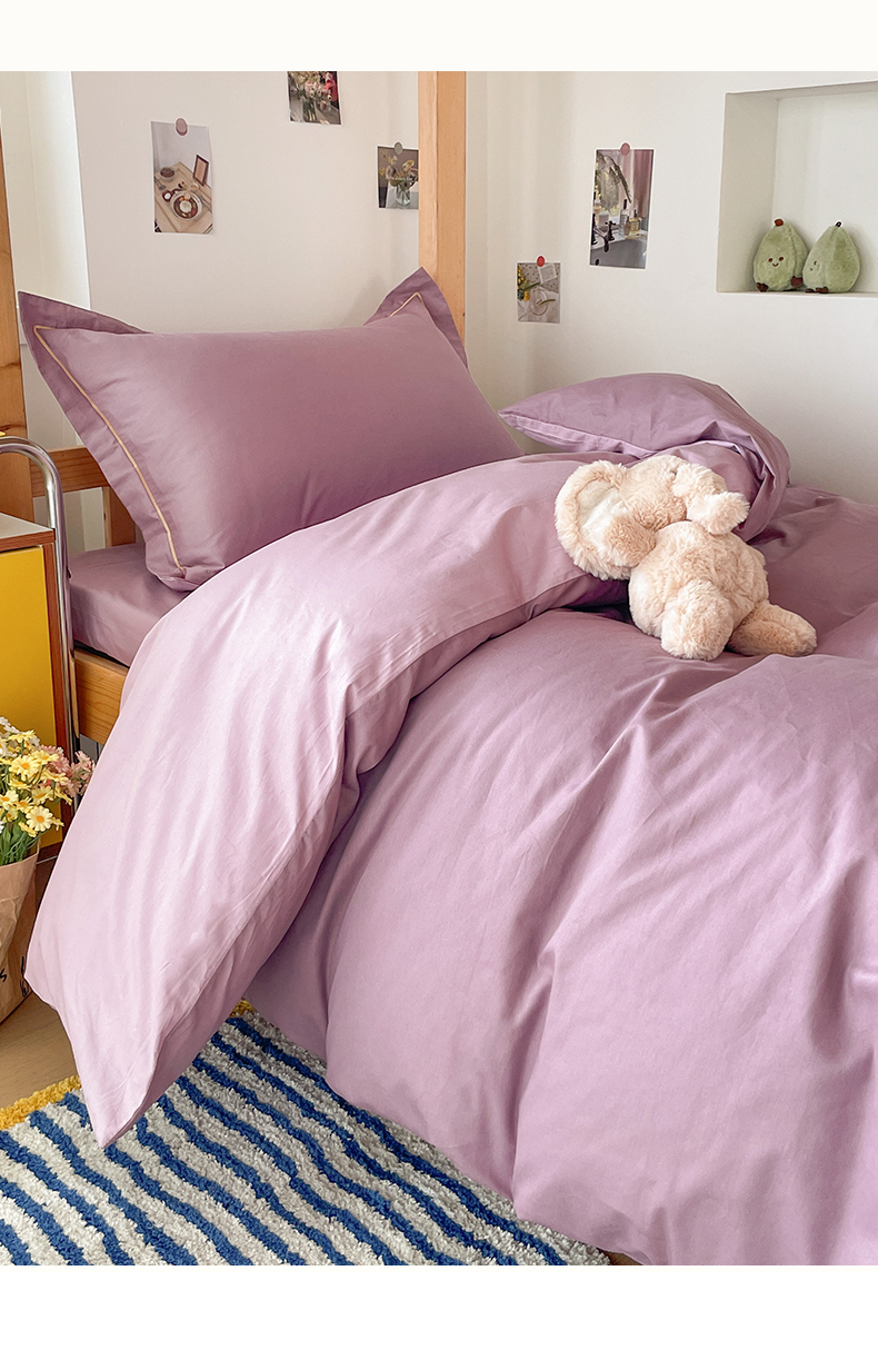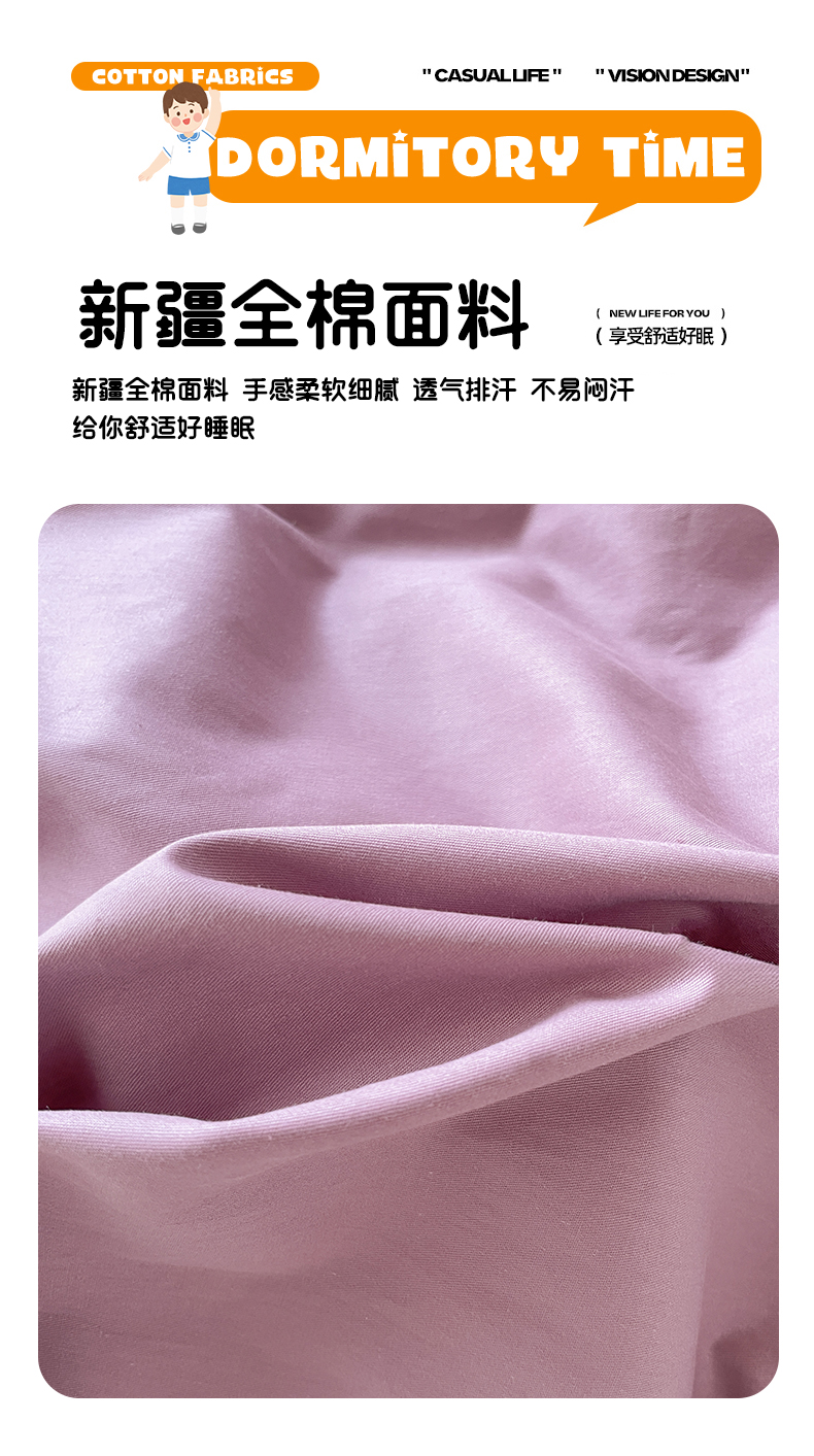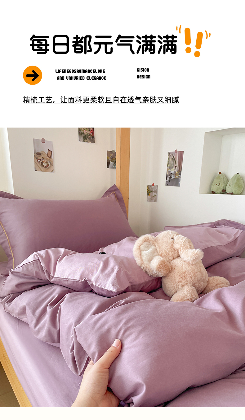 商品名称:恩泽家纺 2025新款全棉双拼学生宿舍三件套 灰紫+香芋紫