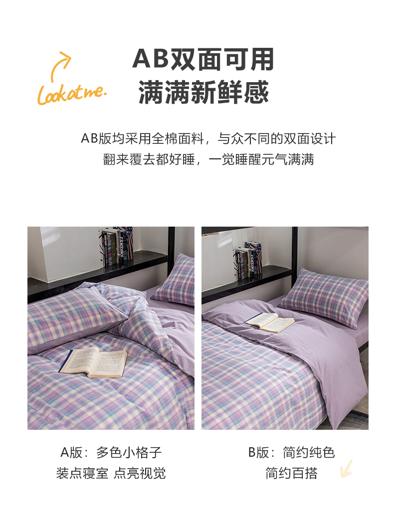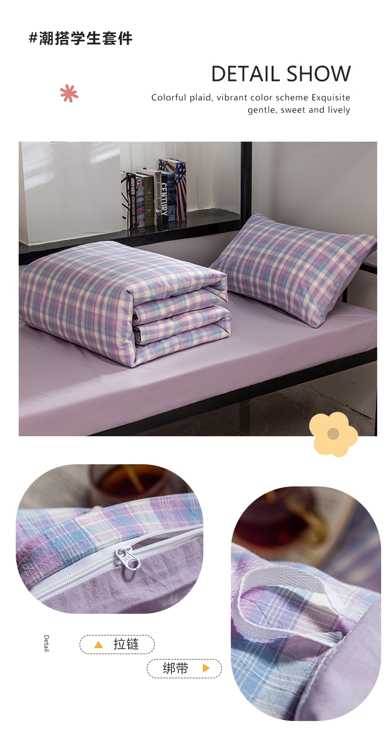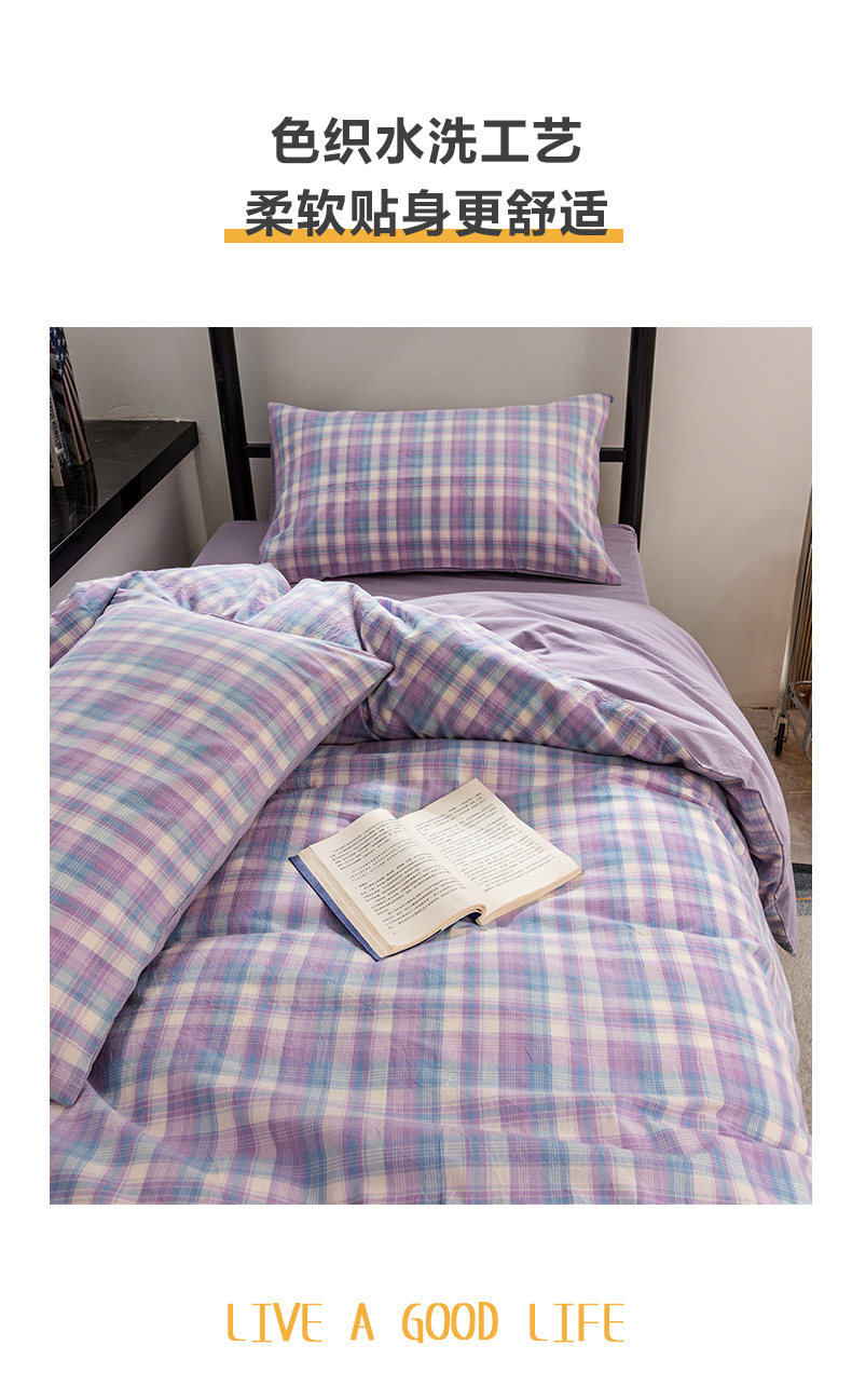 当前位置: 91家纺网 > 商品网购 > 床品套件 > 三件套 > 柠萌家居 2025新款无印良品风色织水洗棉A类学生宿舍三件套 星空紫格
