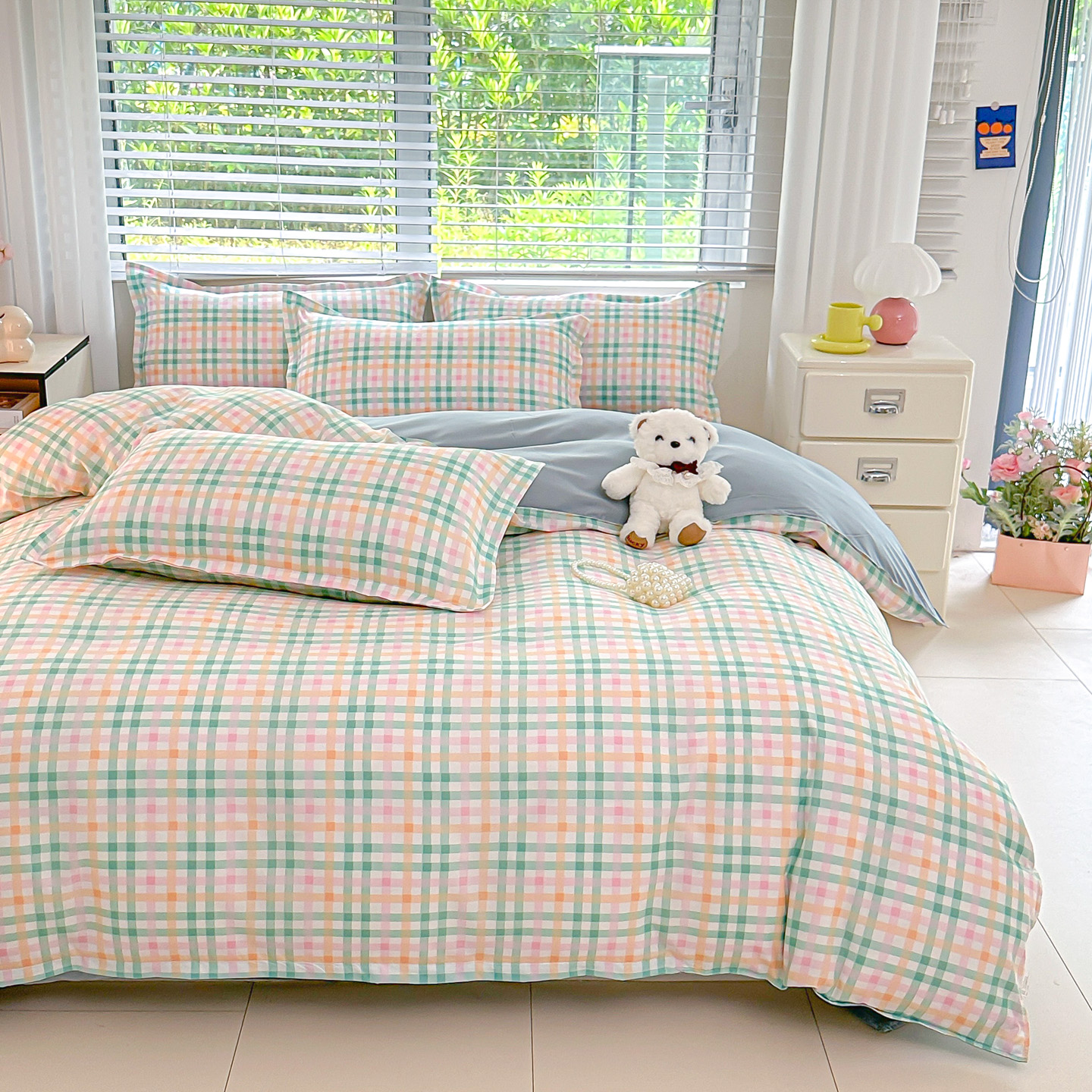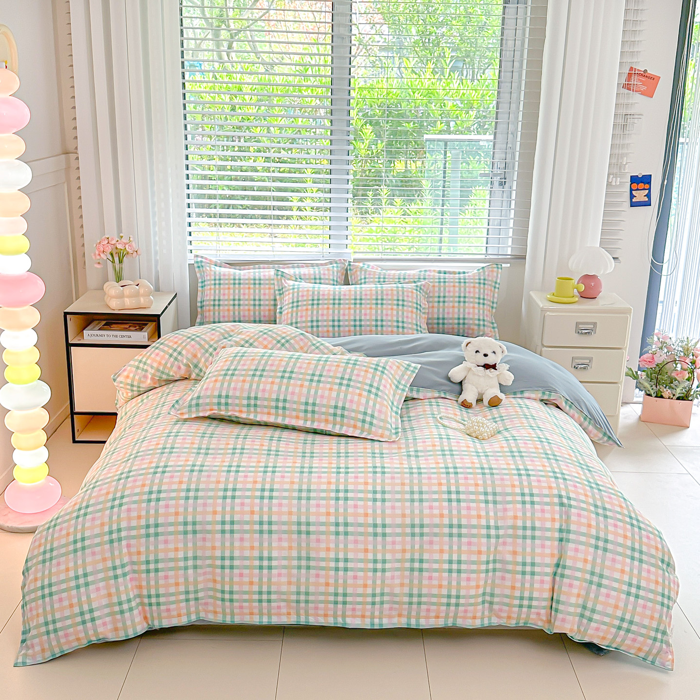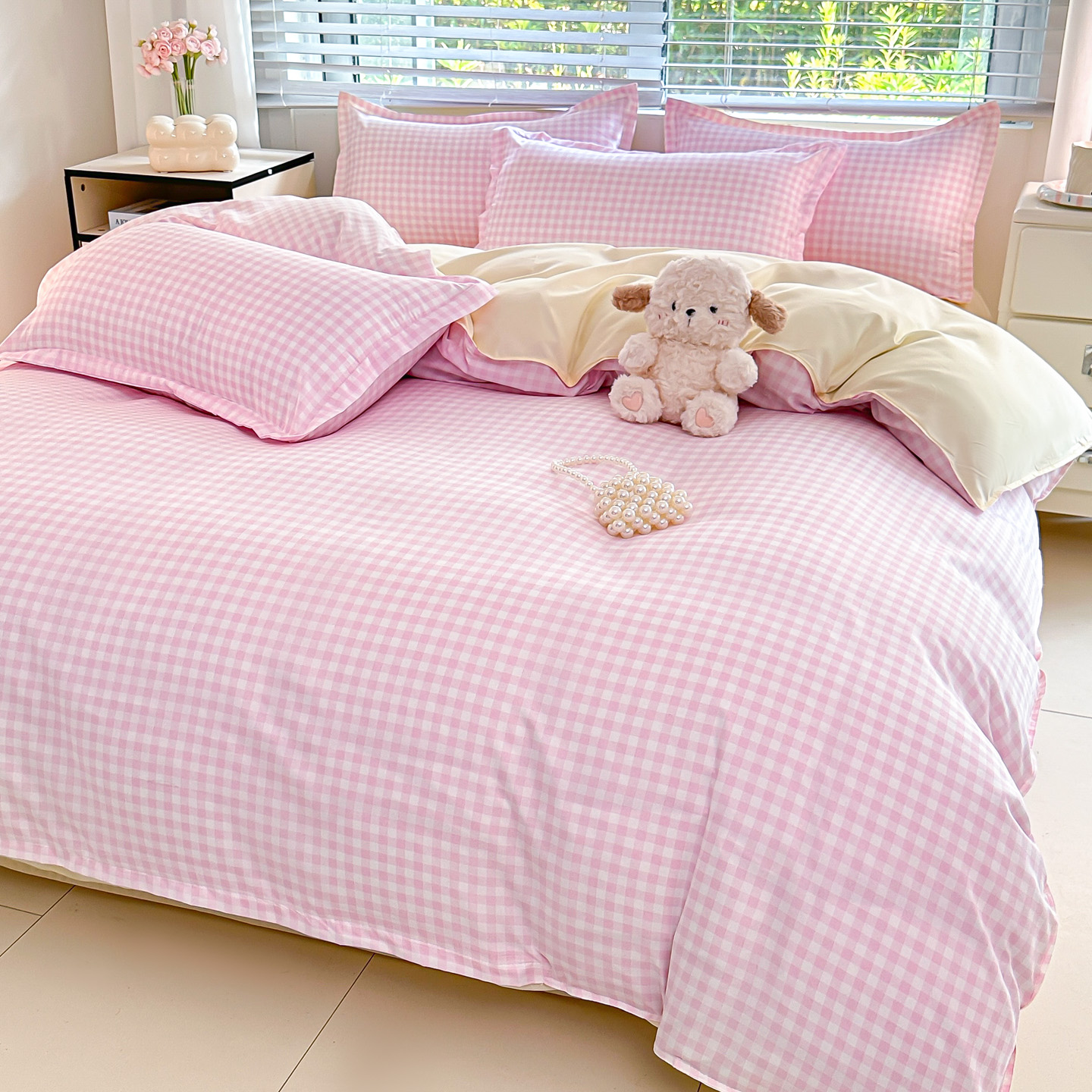 当前位置: 91家纺网 > 商品网购 > 床品套件 > 四件套 > 普通磨毛四件套 > 楠沐家纺 2025新款格子芦荟棉磨毛四件套 心动粉