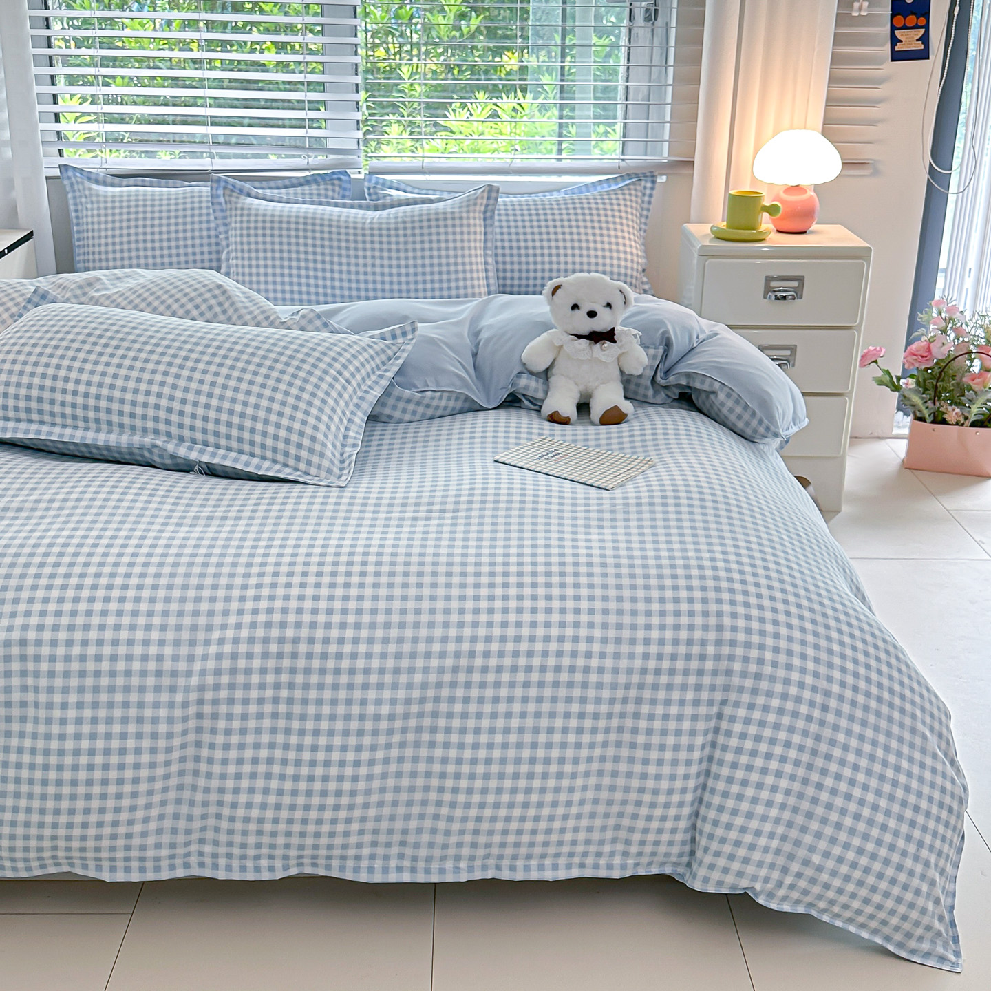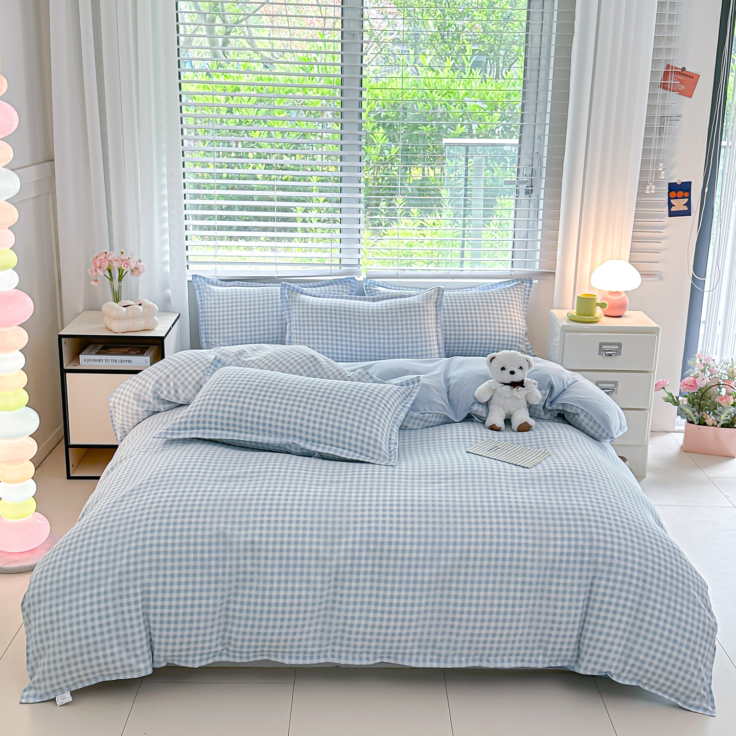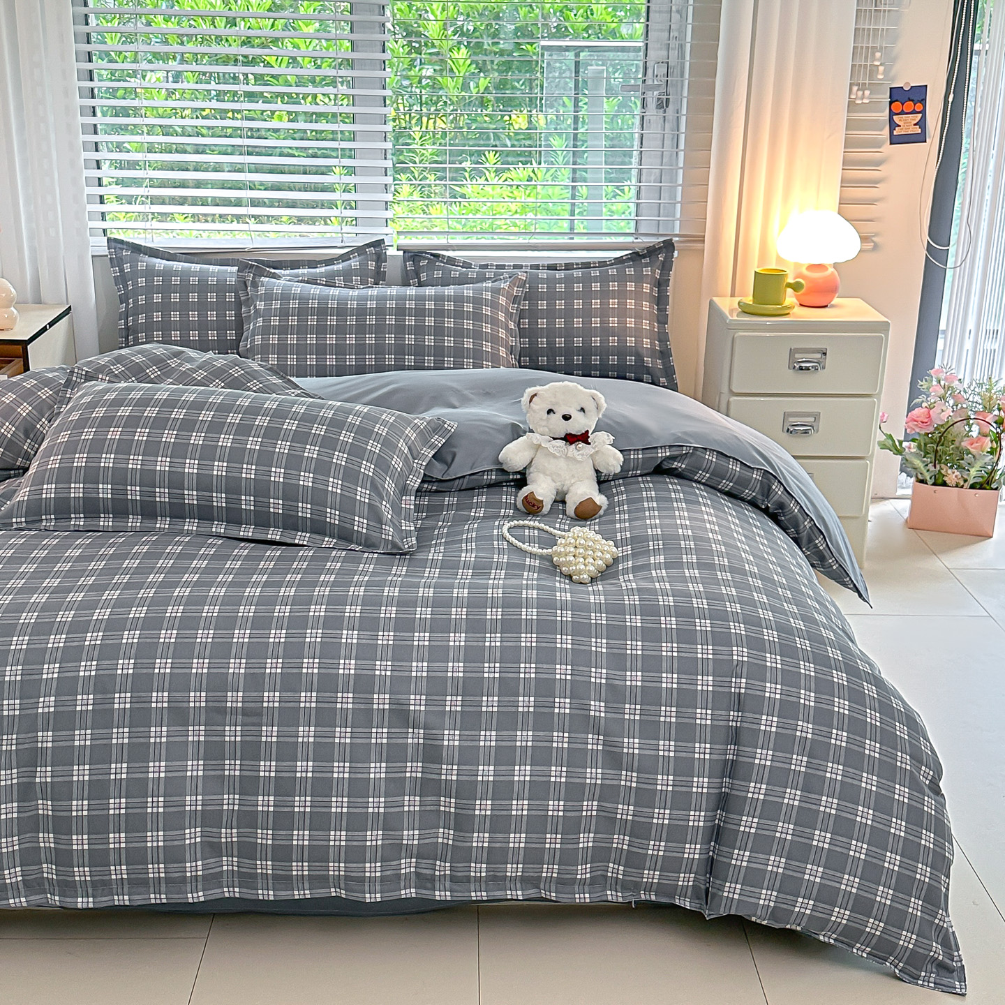 当前位置: 91家纺网 > 商品网购 > 床品套件 > 四件套 > 普通磨毛四件套 > 楠沐家纺 2025新款格子芦荟棉磨毛四件套 心动粉