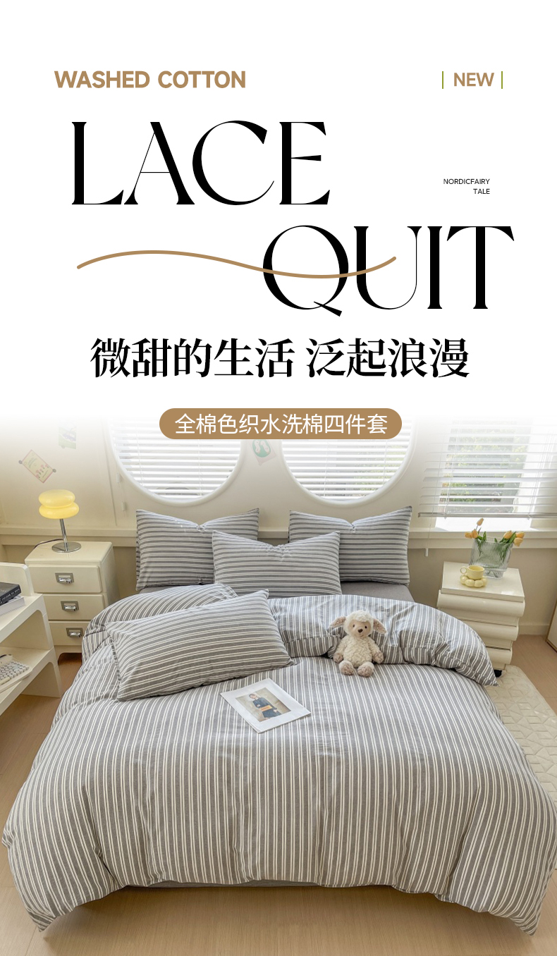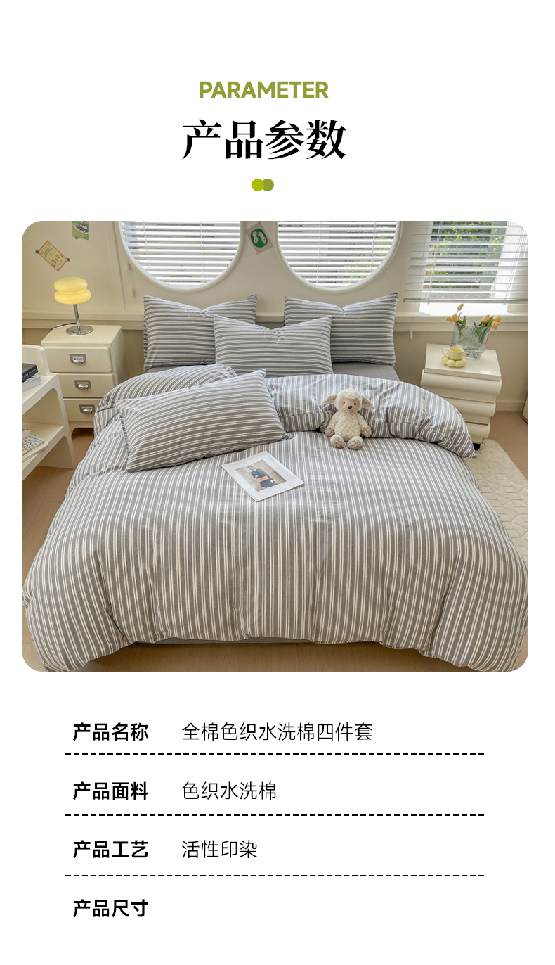当前位置: 91家纺网 > 商品网购 > 床品套件 > 四件套 > 色织四件套 > 菡宝 【不断货 预留5公分缩水】a类母婴级纯棉全棉色织水洗棉四件套 支持定制定做尺寸 牧野-绅士灰