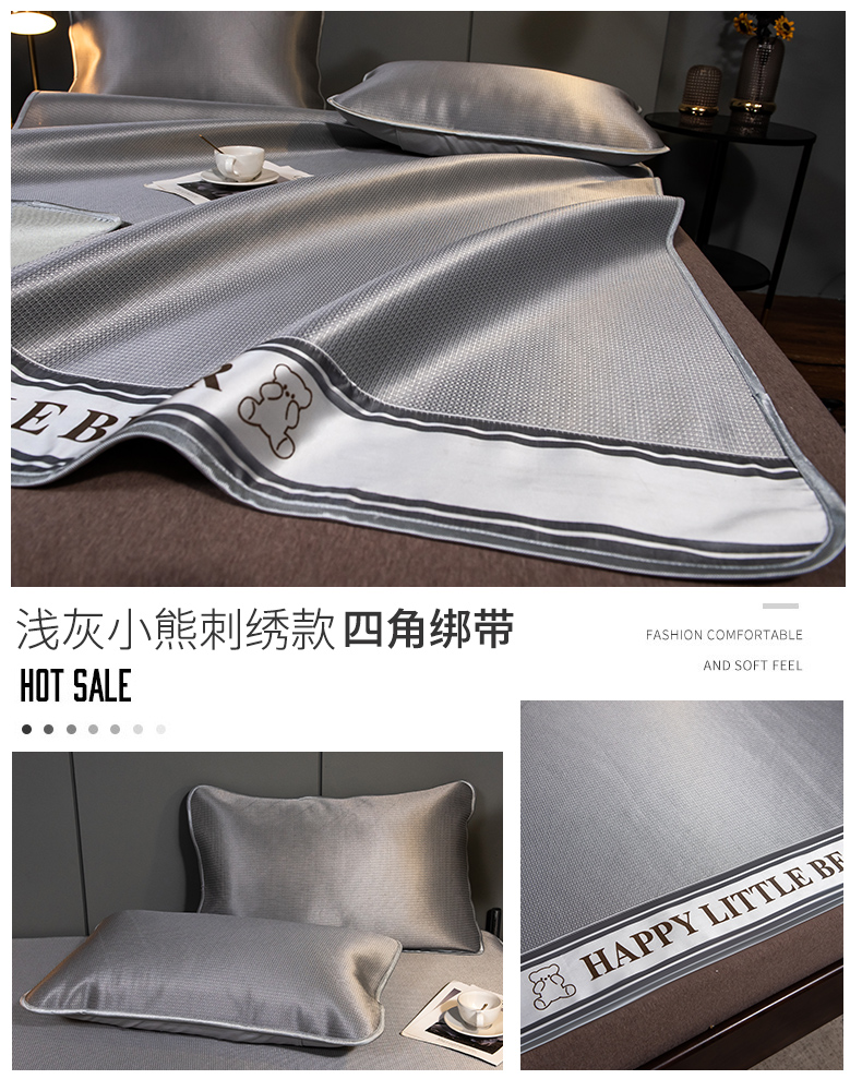 商品名称:莱家富 2025新款碳光席普通款小包边冰丝席 浅灰小熊包边款