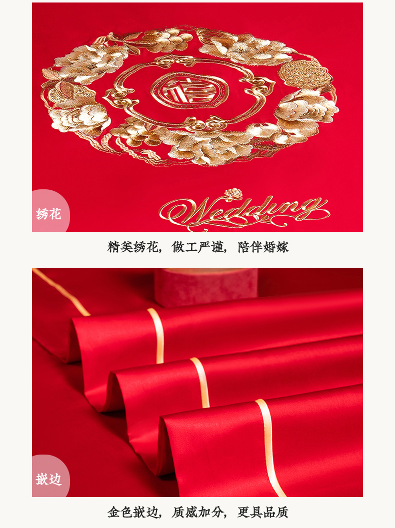 (总)千禧家纺 2024新款双面长绒棉磨毛加厚保暖绣花婚庆套件,大喜大吉,鸿运贺禧,欢乐喜事,欢喜,美满爱情,喜上眉梢,喜约,相伴一生,挚爱