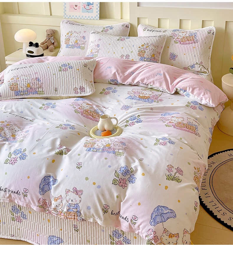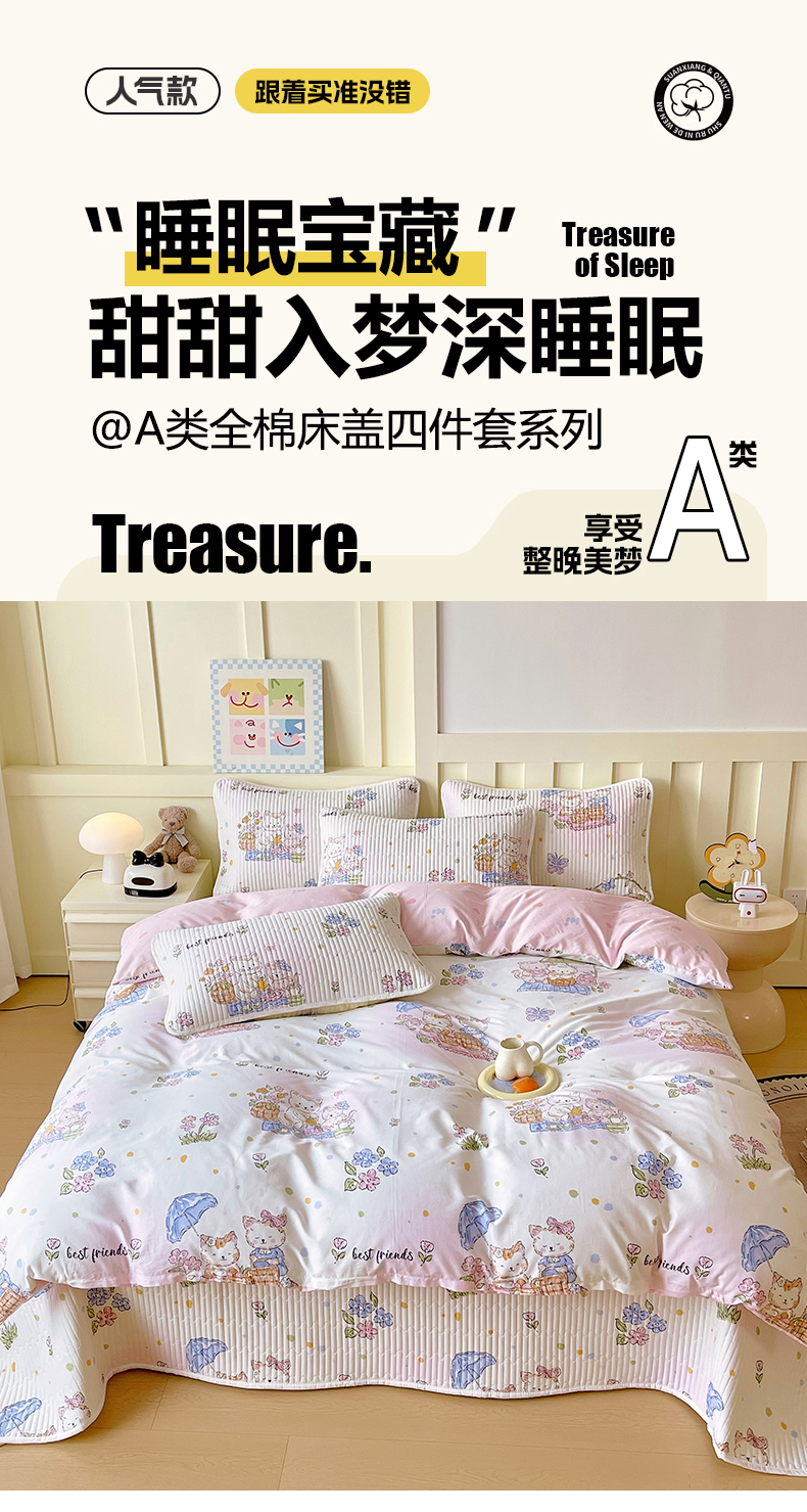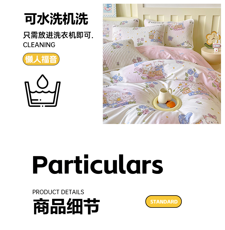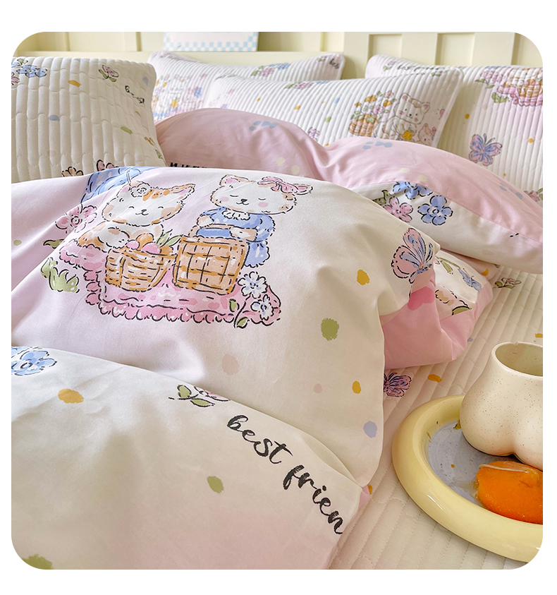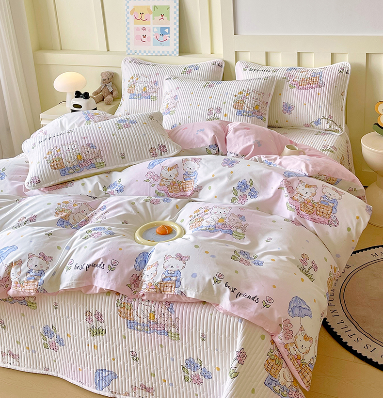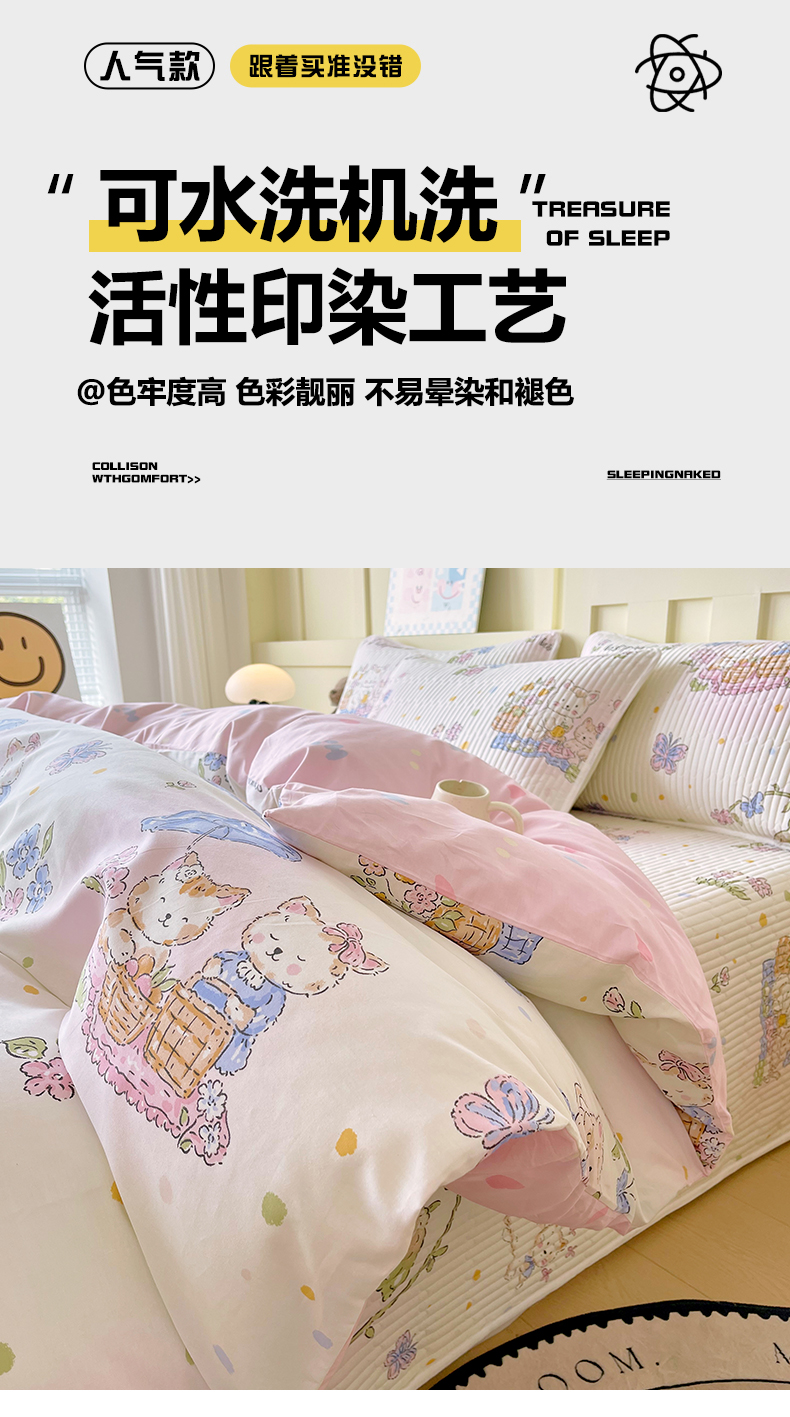 当前位置: 91家纺网 > 商品网购 > 床品套件 > 四件套 > 全棉普通四件套 > 2025新款A类全棉印花床盖四件套 喵喵日记