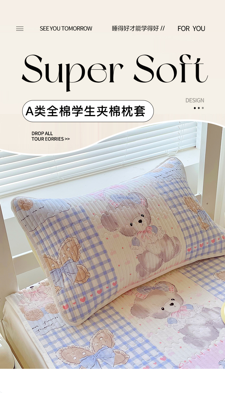 金鑫汇家纺2025新款A类学生宿舍枕套系列单品 熊熊精灵