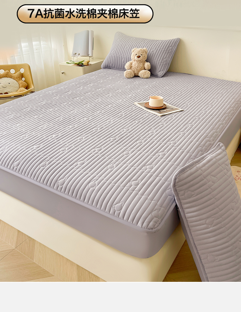 (总)雯豆家纺 2025新款复古风皱皱棉印花夹棉床笠三件套加厚床垫保护套,小南瓜,春日小狗,初夏,浪漫花语,爱尔蓝,初心,蝴蝶结小猫,花小愈,可爱TK,快乐萌宝,快乐时光,毛球团团,蘑菇仙子,奶萌小狗,小苍兰
