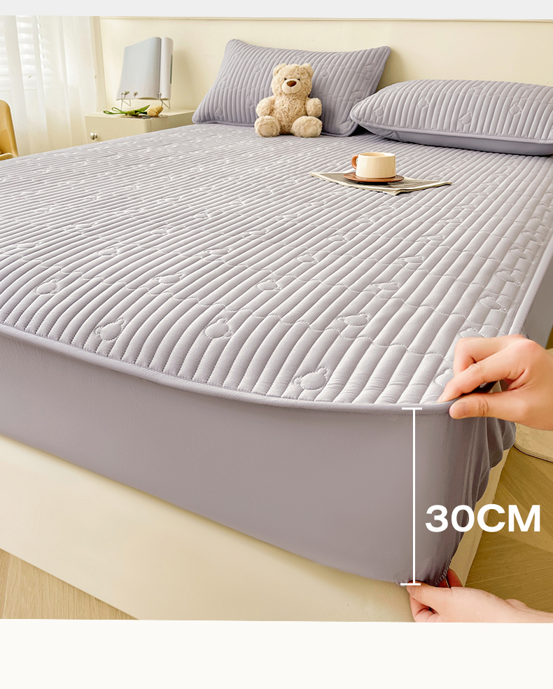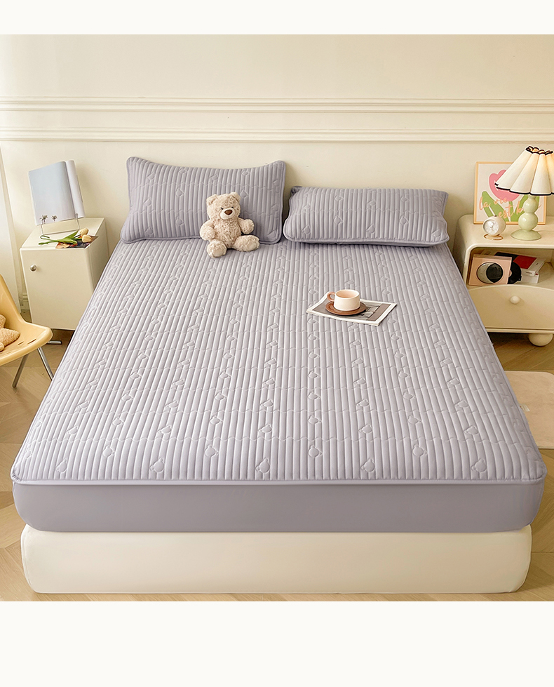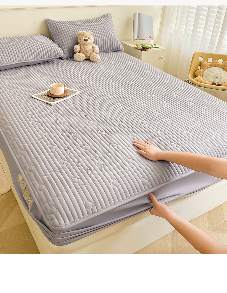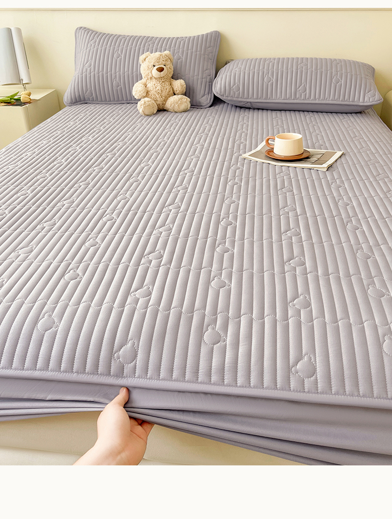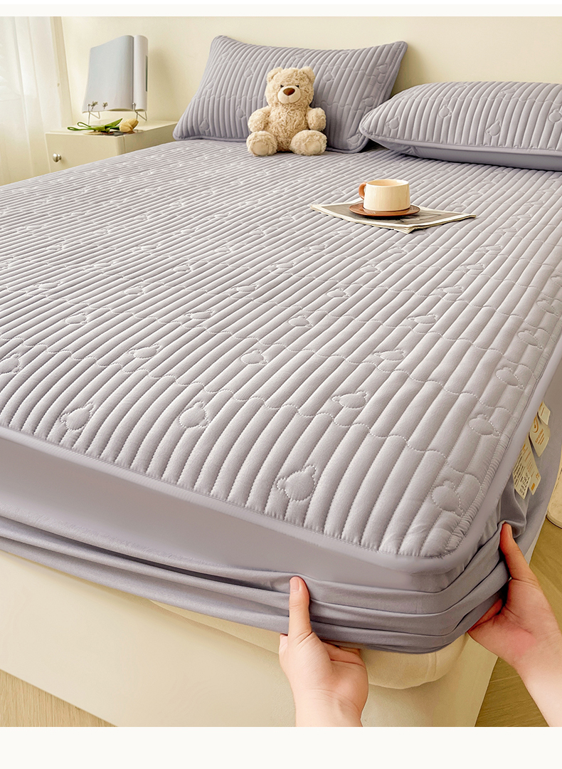 雯豆家纺 2025新款洛川A类夹棉床笠三件套水洗棉磨毛纯色床护垫床单保护套 洛川-暮云灰