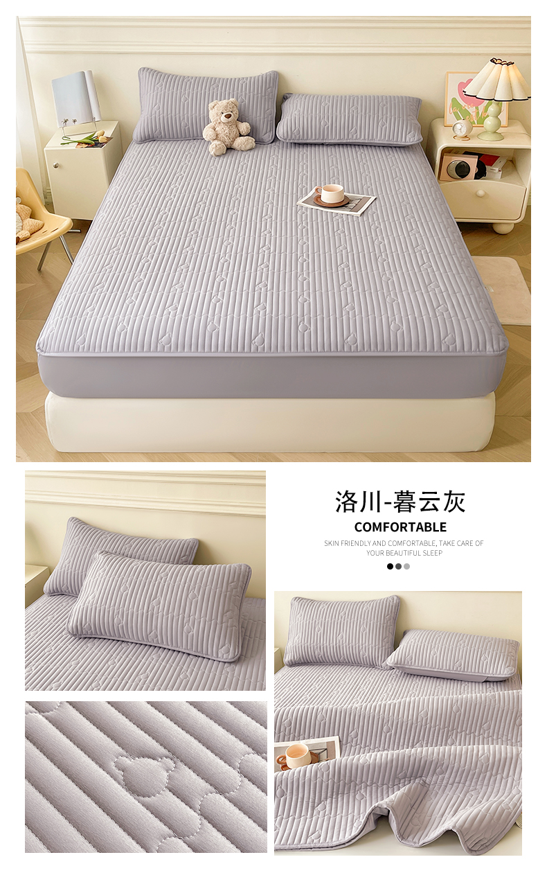 • 91家纺网 家纺一手货源 找家纺 雯豆家纺 2025新款洛川A类夹棉床笠三件套水洗棉磨毛纯色床护垫床单保护套 洛川-暮云灰