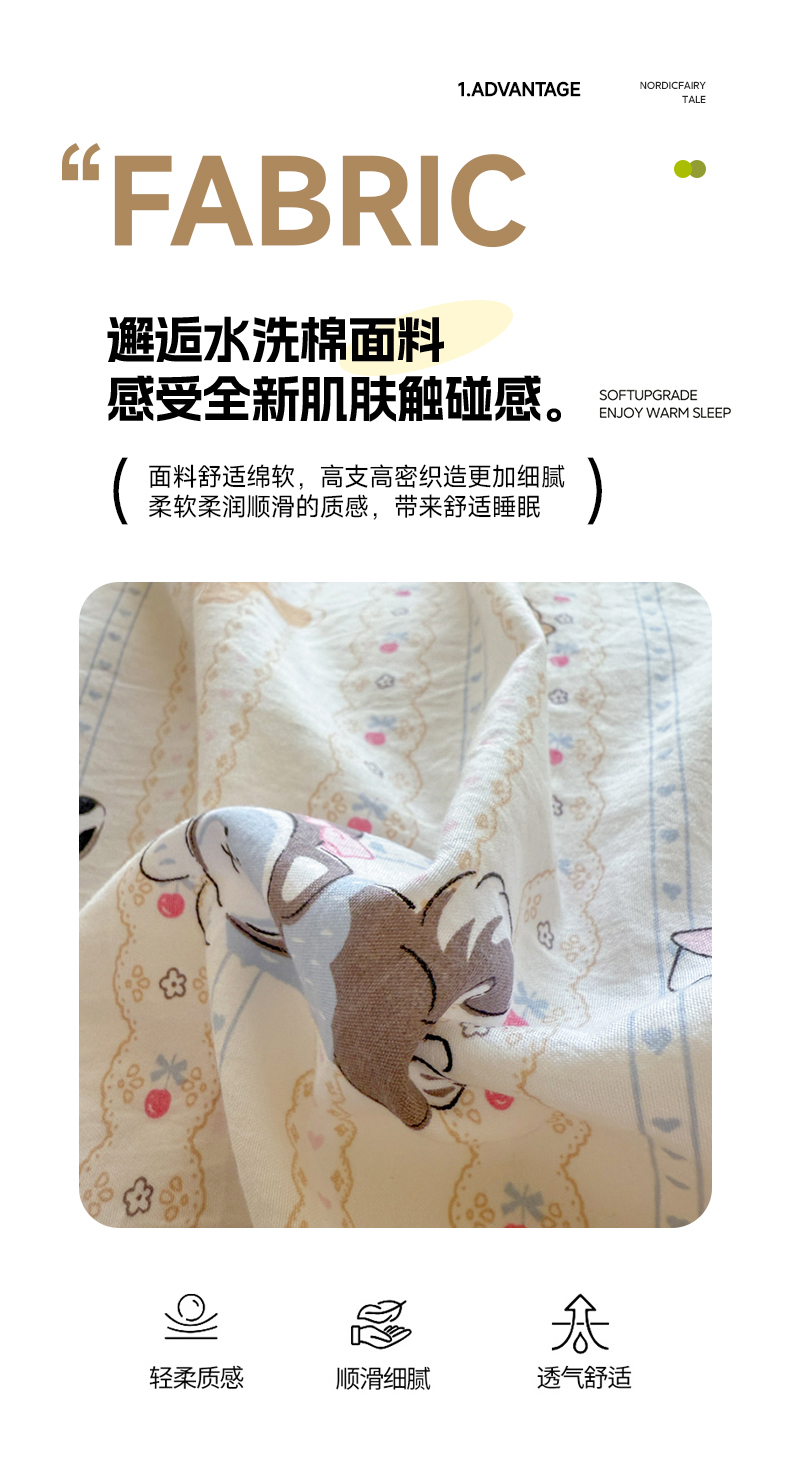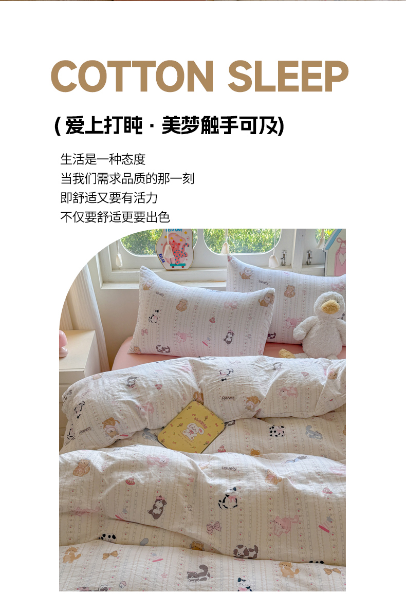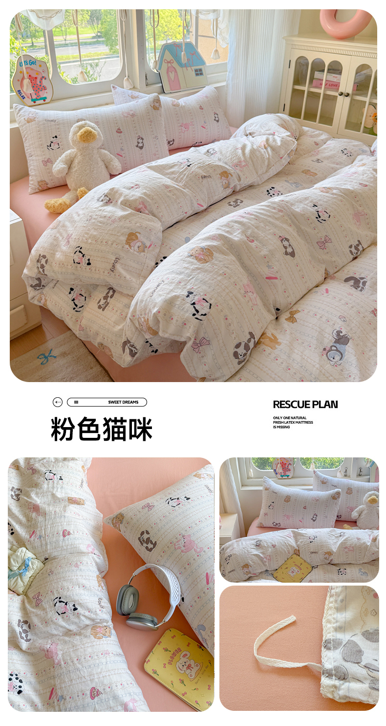 当前位置: 91家纺网 > 商品网购 > 床品套件 > 四件套 > 水洗棉四件套 > 晚爱家纺(原晚安家居) 2025新款超柔水洗棉四件套卡通小清新学生宿舍三件套 粉色猫咪
