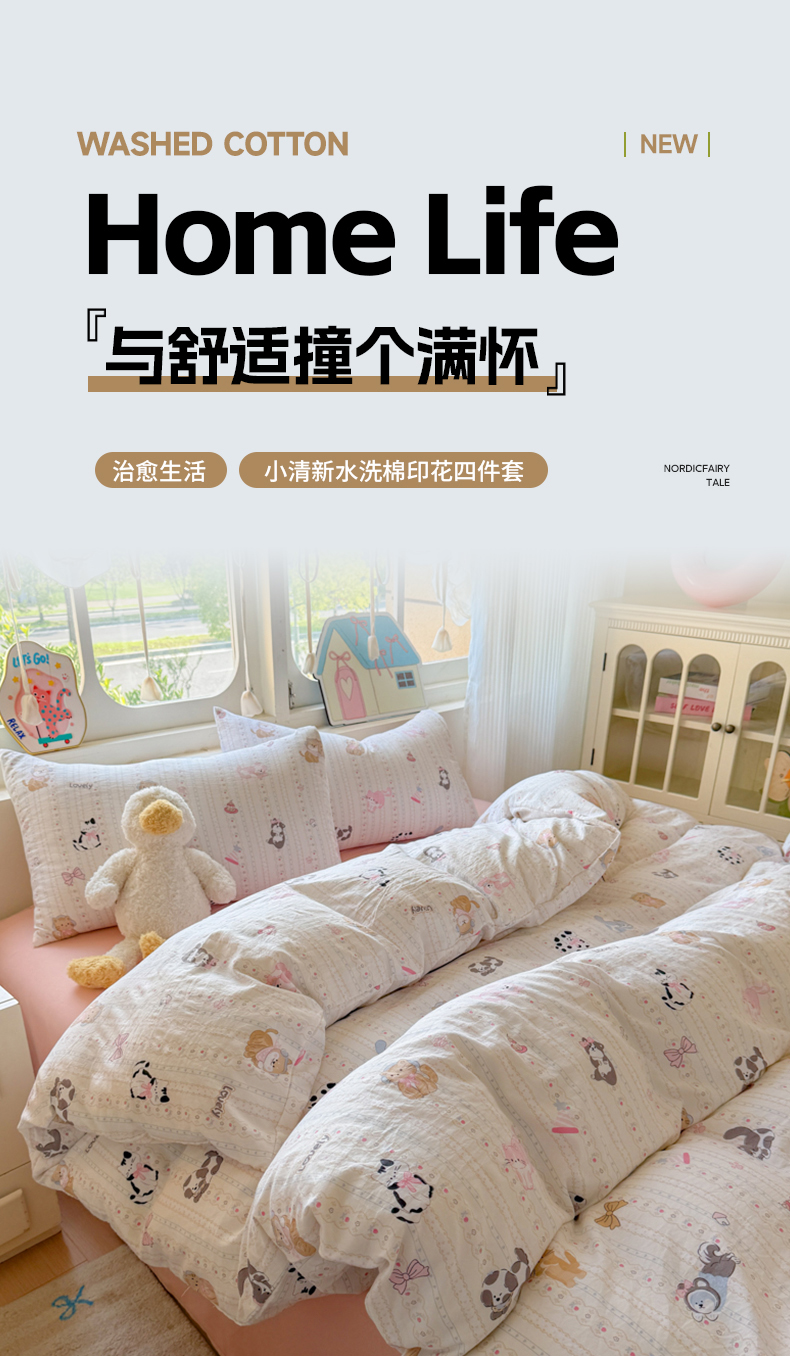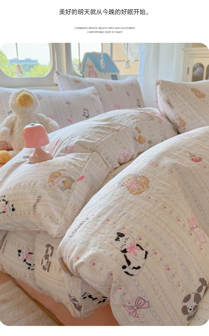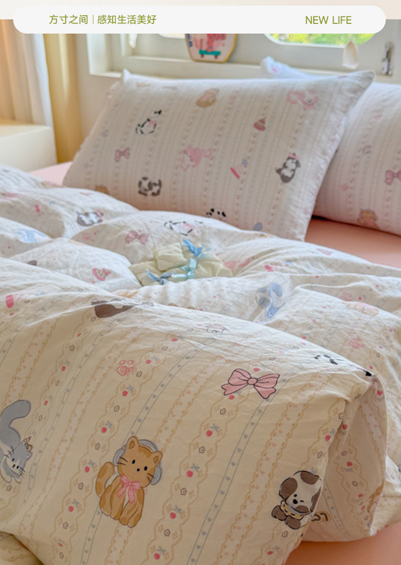 当前位置: 91家纺网 > 商品网购 > 床品套件 > 四件套 > 水洗棉四件套 > 晚爱家纺(原晚安家居) 2025新款超柔水洗棉四件套卡通小清新学生宿舍三件套 粉色猫咪