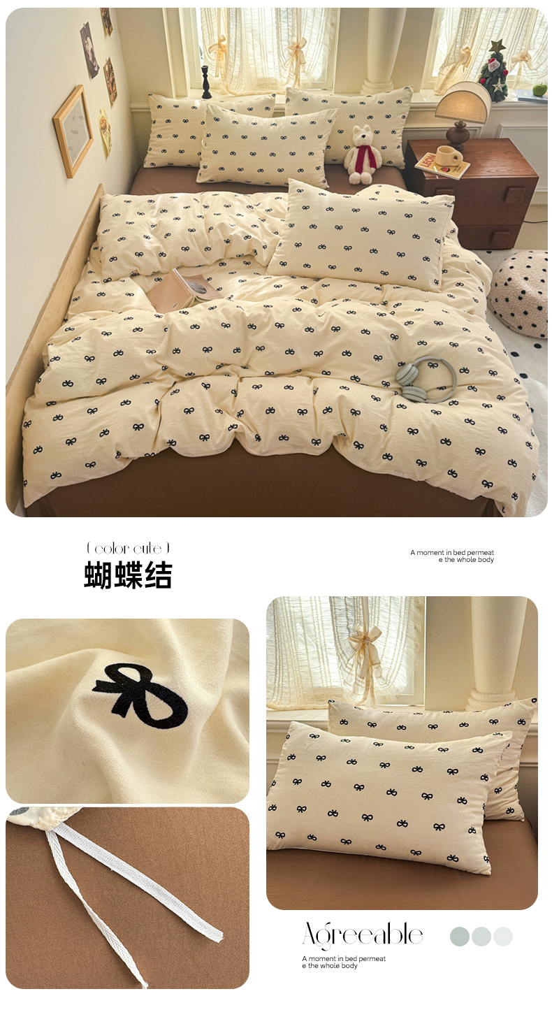 当前位置: 91家纺网 > 商品网购 > 床品套件 > 四件套 > 水洗棉四件套 > 晚爱家纺(原晚安家居) 2025新款超柔水洗棉四件套卡通小清新学生宿舍三件套 蝴蝶结