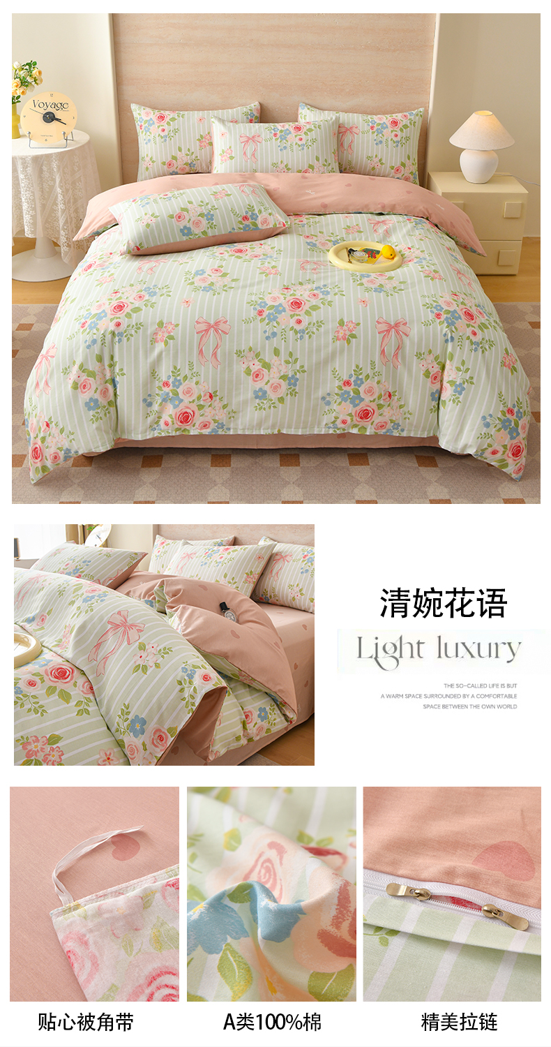 当前位置: 91家纺网 > 商品网购 > 床品套件 > 四件套 > 全棉普通四件套 > 宇彬家纺 2026直播新款13070全棉纯棉印花床单床笠款四件套和单被套喷气清新简约(缩水足可定做)清婉花语
