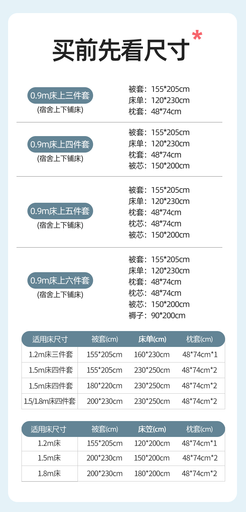 0.9m床六件套【床单三件套+春秋被约3斤+枕芯+垫芯】 | ¥176.00 |