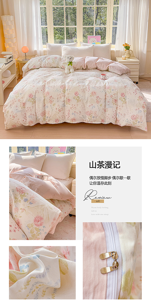 禧安居 2025新款高支高密活性印染全棉印花四件套全棉四件套三件套被套(支持定制尺寸)山茶漫记,山茶漫记