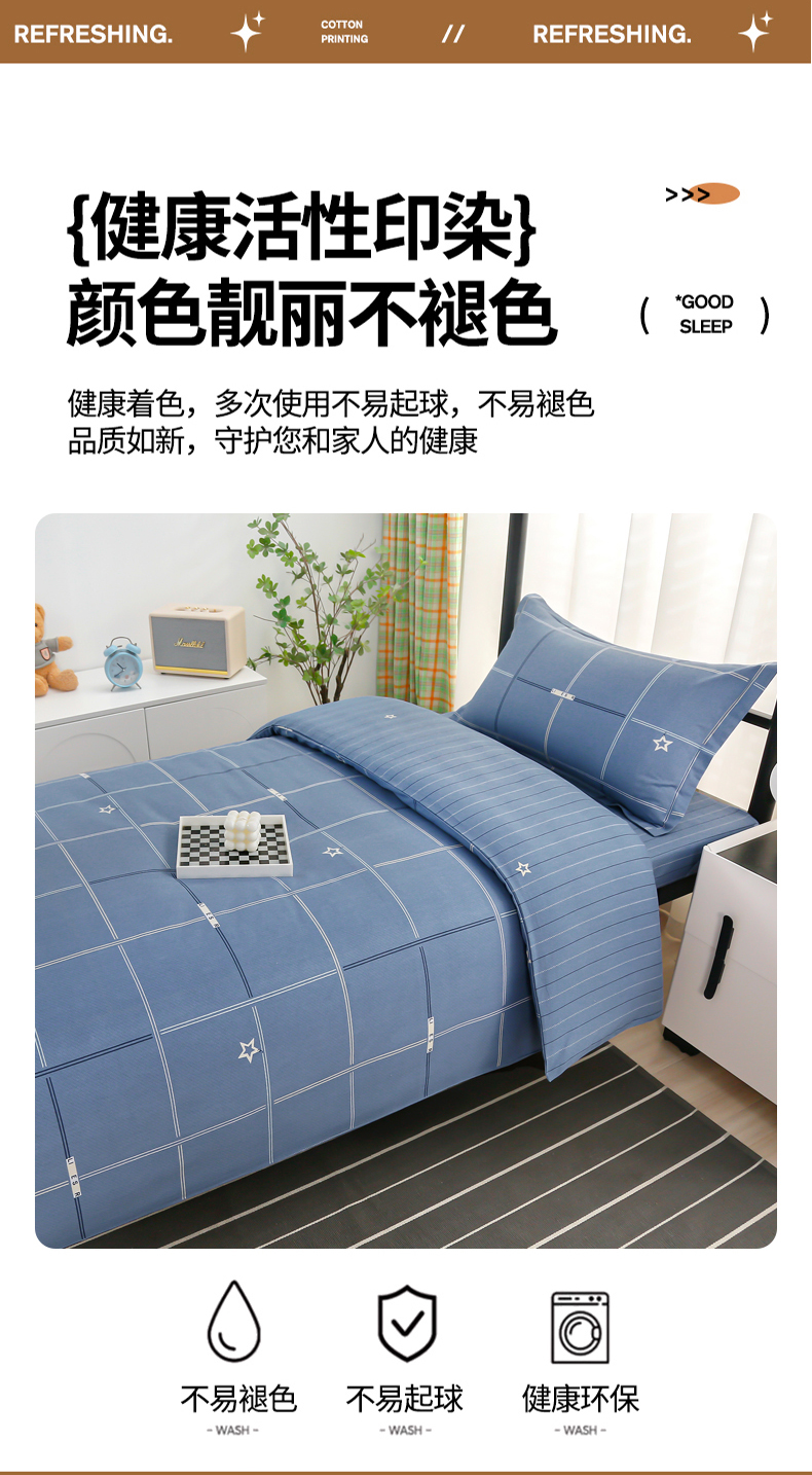 当前位置: 91家纺网 > 商品网购 > 床品套件 > 四件套 > 全棉普通四件套 > 乐旗家纺 2025新款13372全棉床笠款学生宿舍三件套六件套多件套 潮流前线