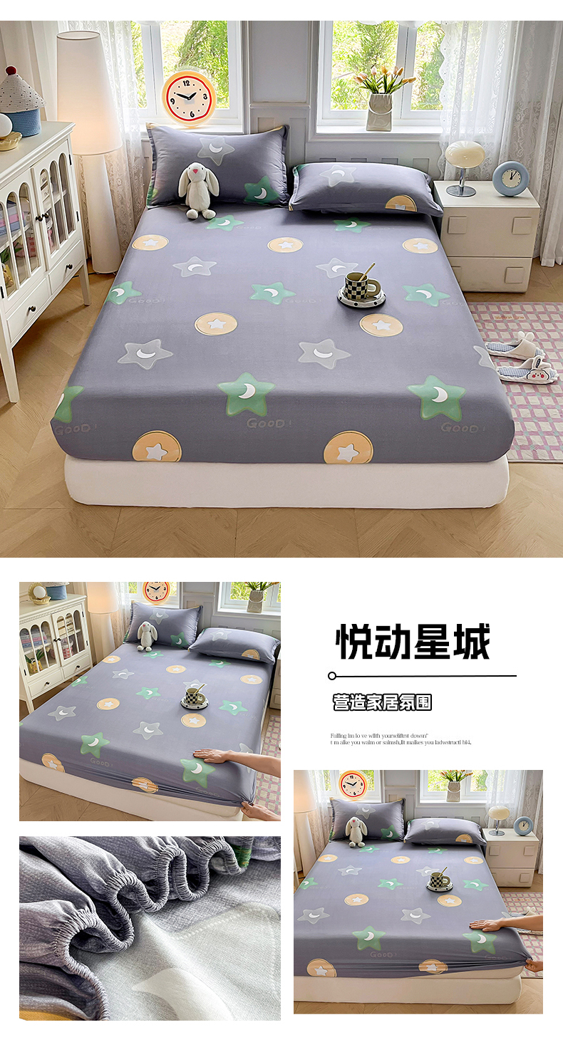 禧安居 2025新款高支高密活性印染全棉印花床笠全棉床笠单床笠 悦动星城