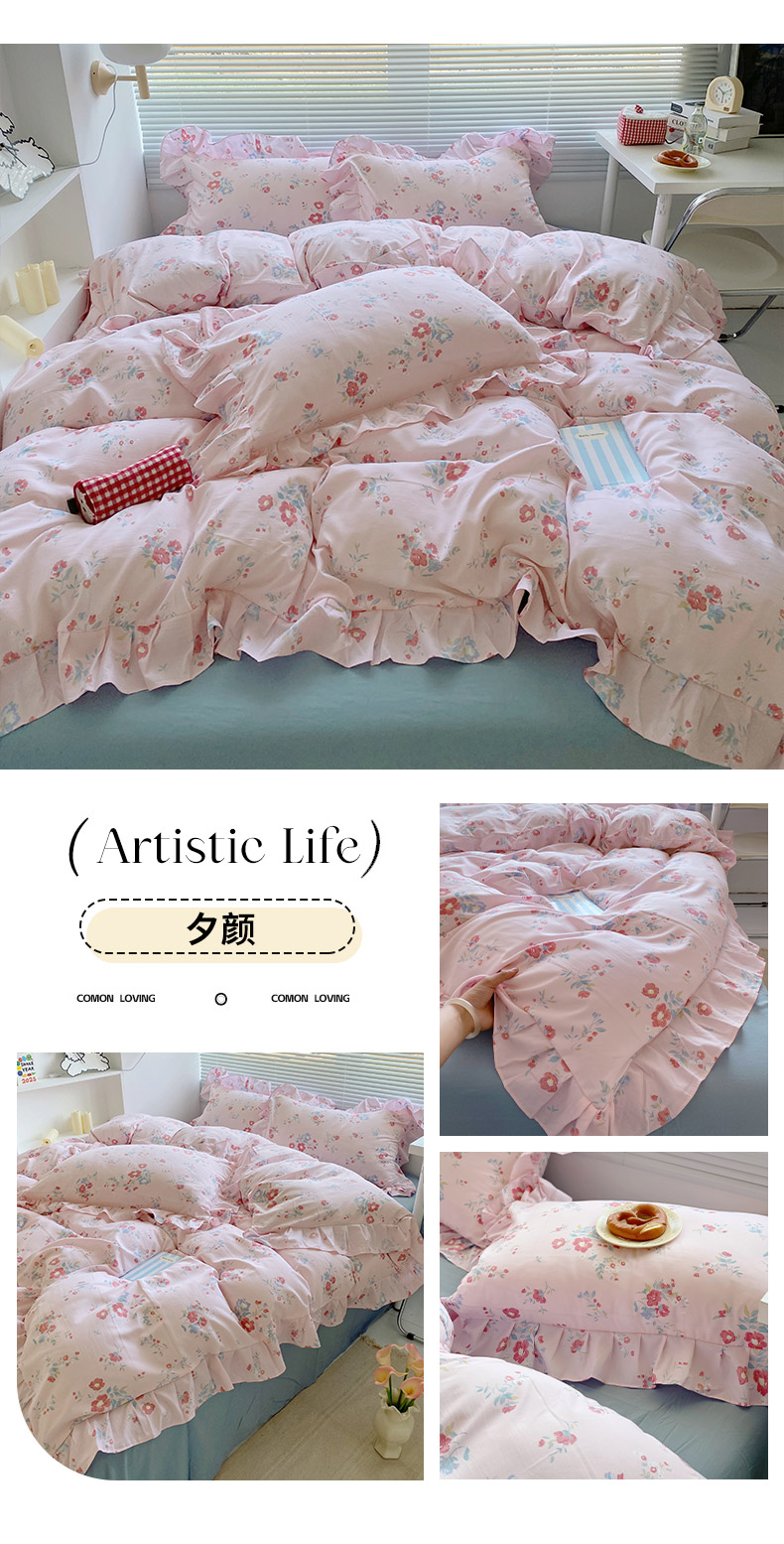 当前位置: 91家纺网 > 商品网购 > 床品套件 > 四件套 > 水洗棉四件套 > 芷凡家纺2025新款A类加厚超柔水洗棉花边款韩式四件套-风格二 夕颜