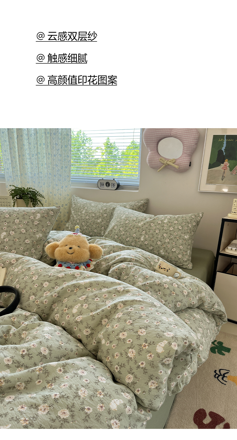 当前位置: 91家纺网 > 商品网购 > 床品套件 > 四件套 > 其它四件套 > 卡迪熊家纺 2025新款超柔云感m印花双层纱四件套 花丛小兔