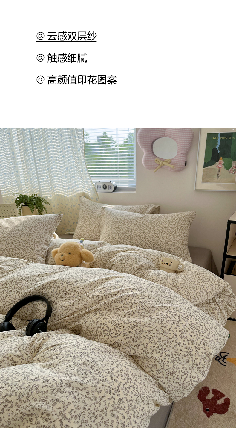 当前位置: 91家纺网 > 商品网购 > 床品套件 > 四件套 > 其它四件套 > 卡迪熊家纺 2025新款超柔云感m印花双层纱四件套 枝蔓繁花