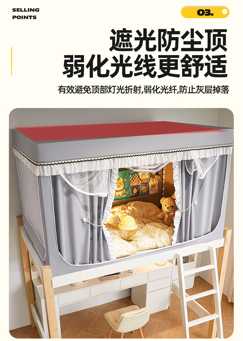 上铺90 (三开门)(加厚自连接烤漆支架)带靠墙帘口袋 | ¥100.00 |