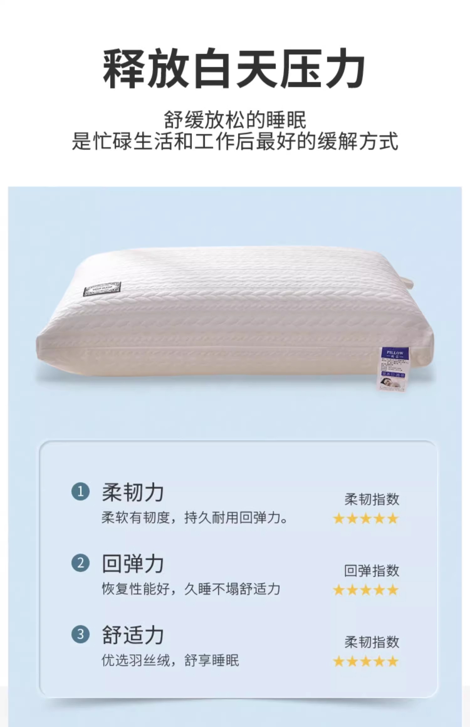 (总)怡薇格枕芯 2026新款刺绣熊猫羽丝绒护颈枕枕头枕芯,亲肤羽丝绒枕-粉,亲肤羽丝绒枕-白,亲肤羽丝绒枕-灰