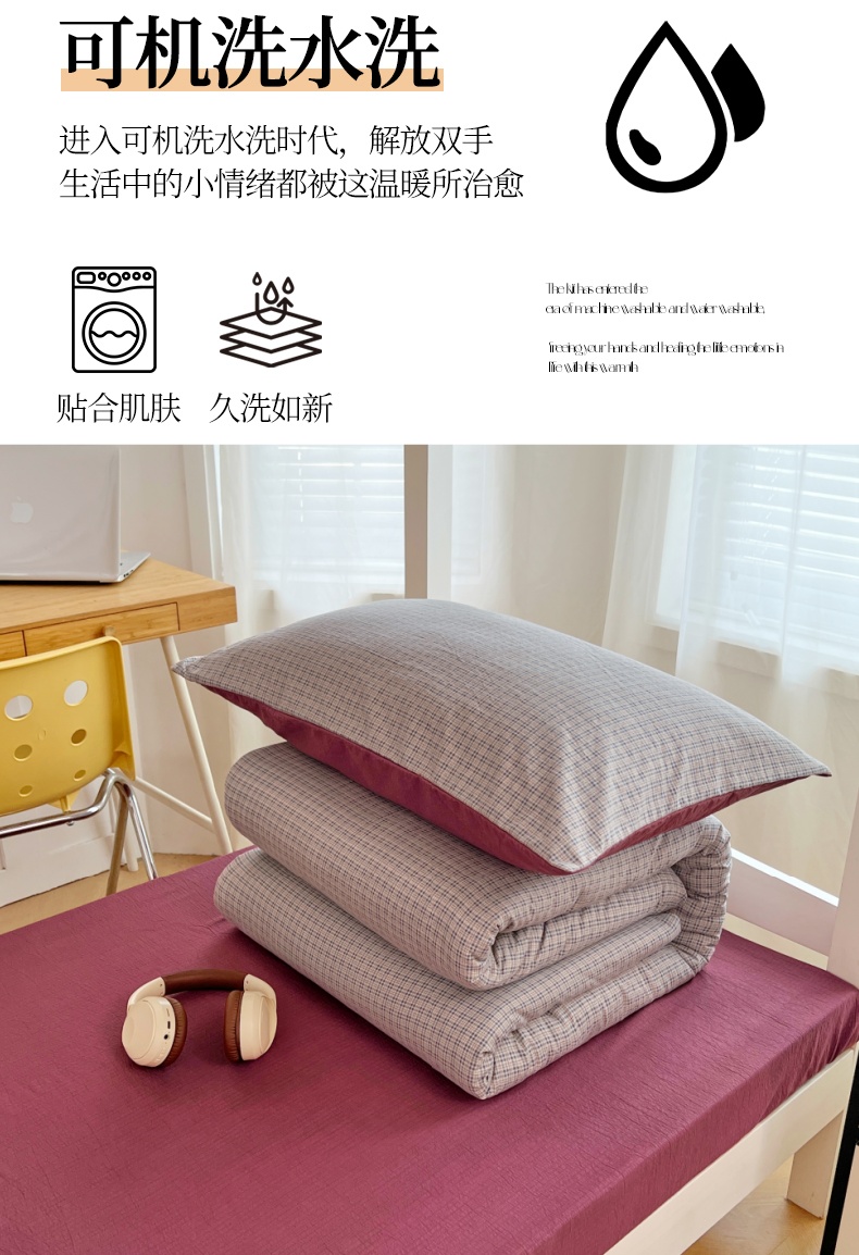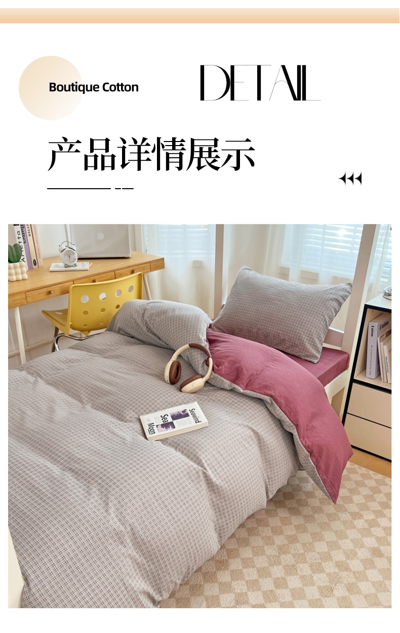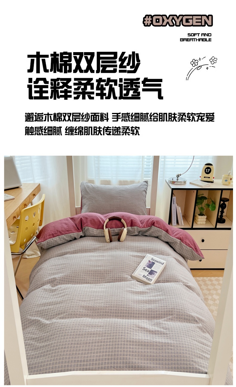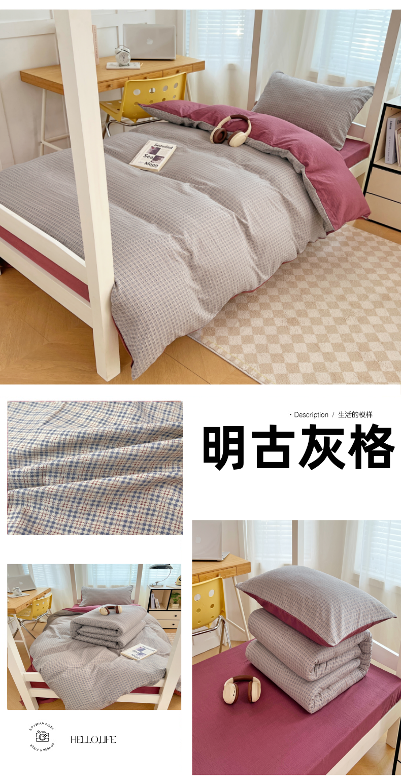 商品名称:梦舒羽 2025新款双层纱格子学生宿舍上下铺套件 常规款-明古灰格