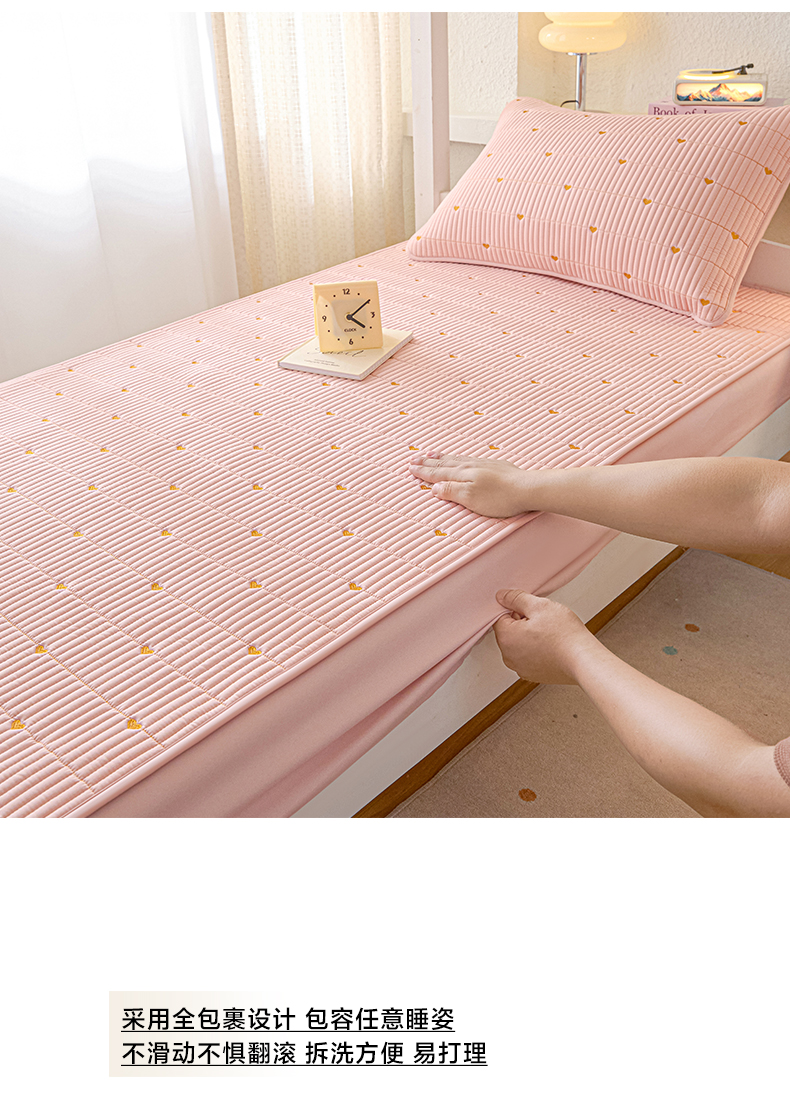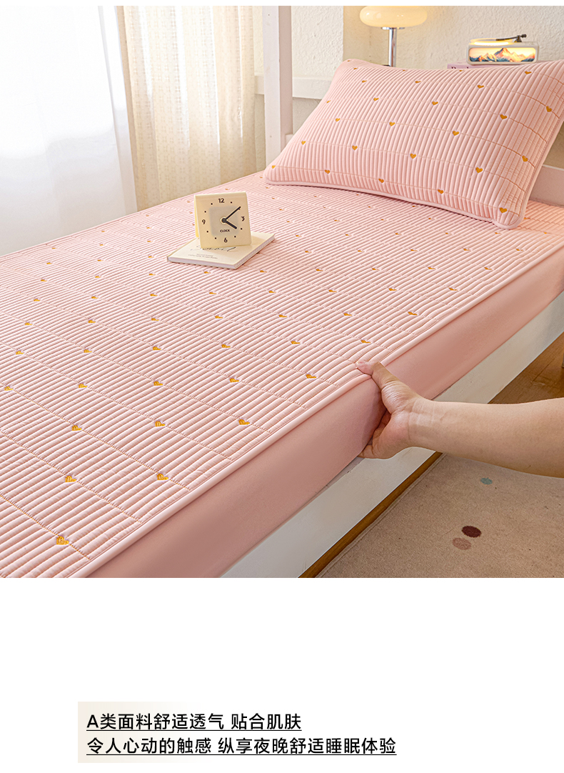 芬晴家纺 2025春夏新款A类大豆夹棉学生床笠单床笠床笠单件-繁星-爱心系列 爱心-豆沙粉