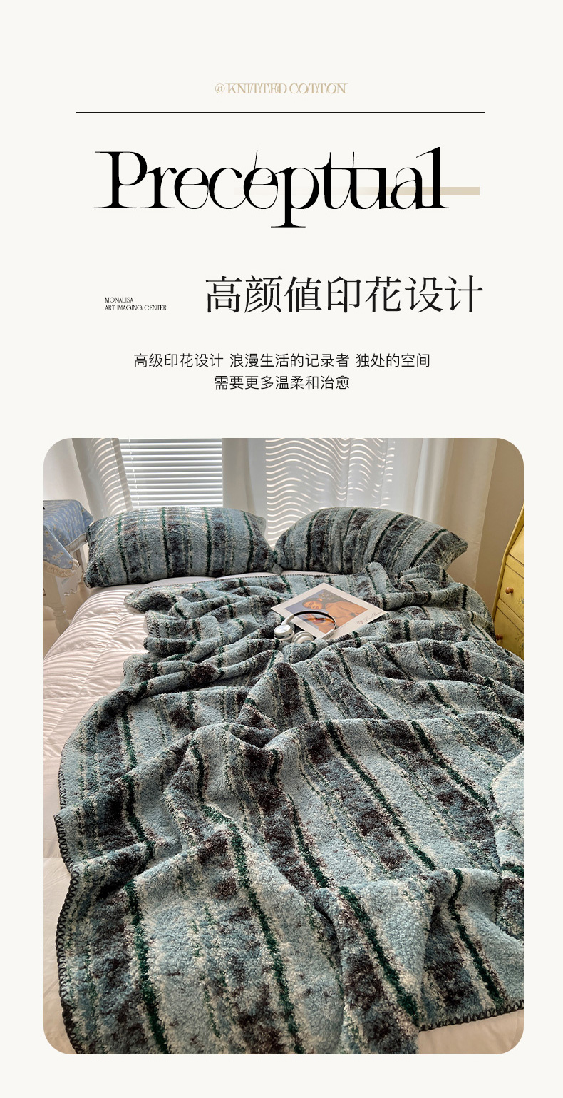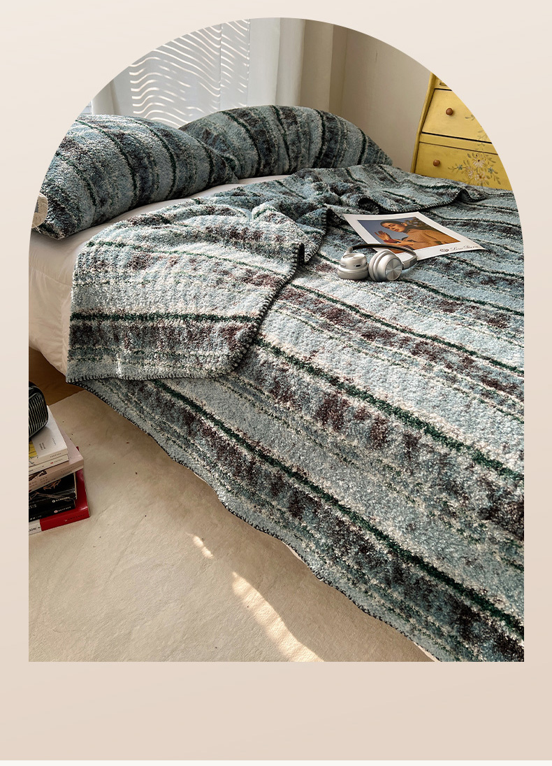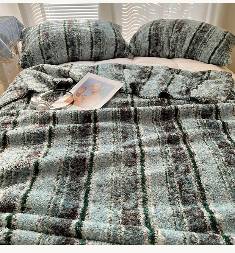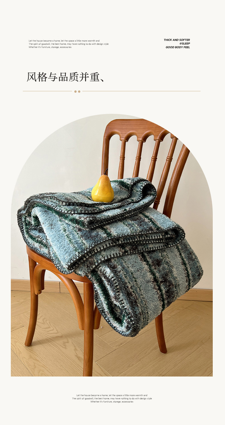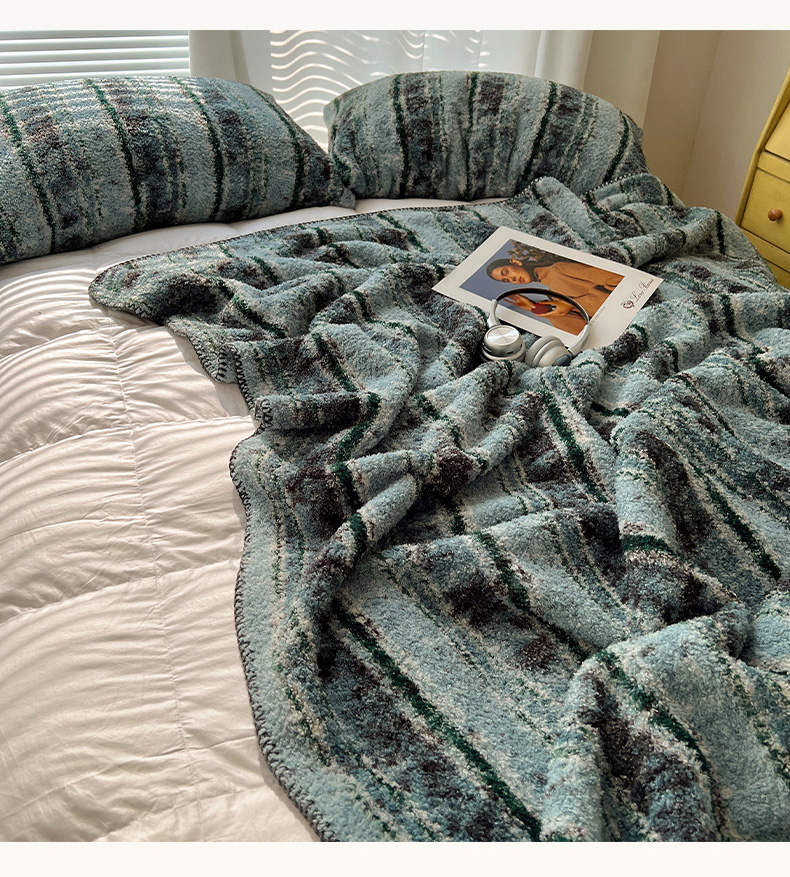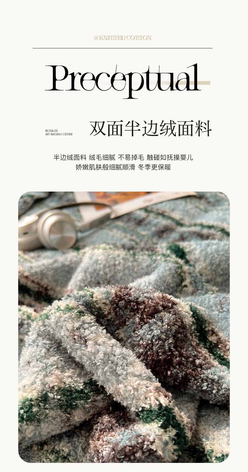 商品名称:舒隅家纺 A类高级感半边绒三角针毛毯毯子 黛弦-绿