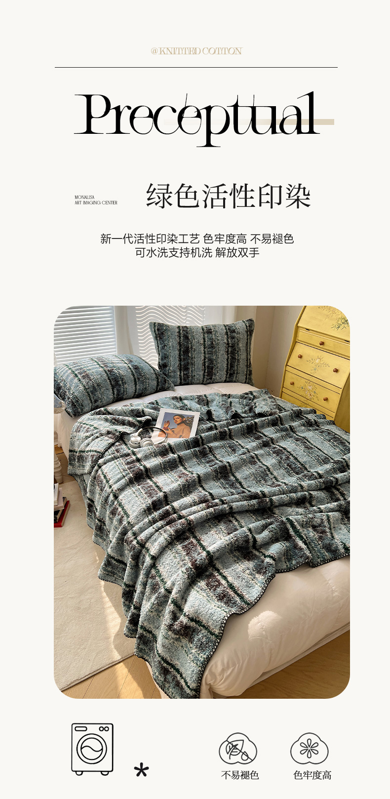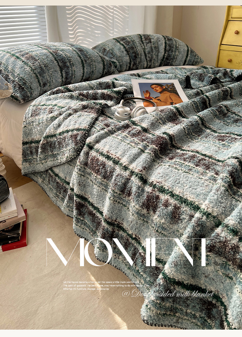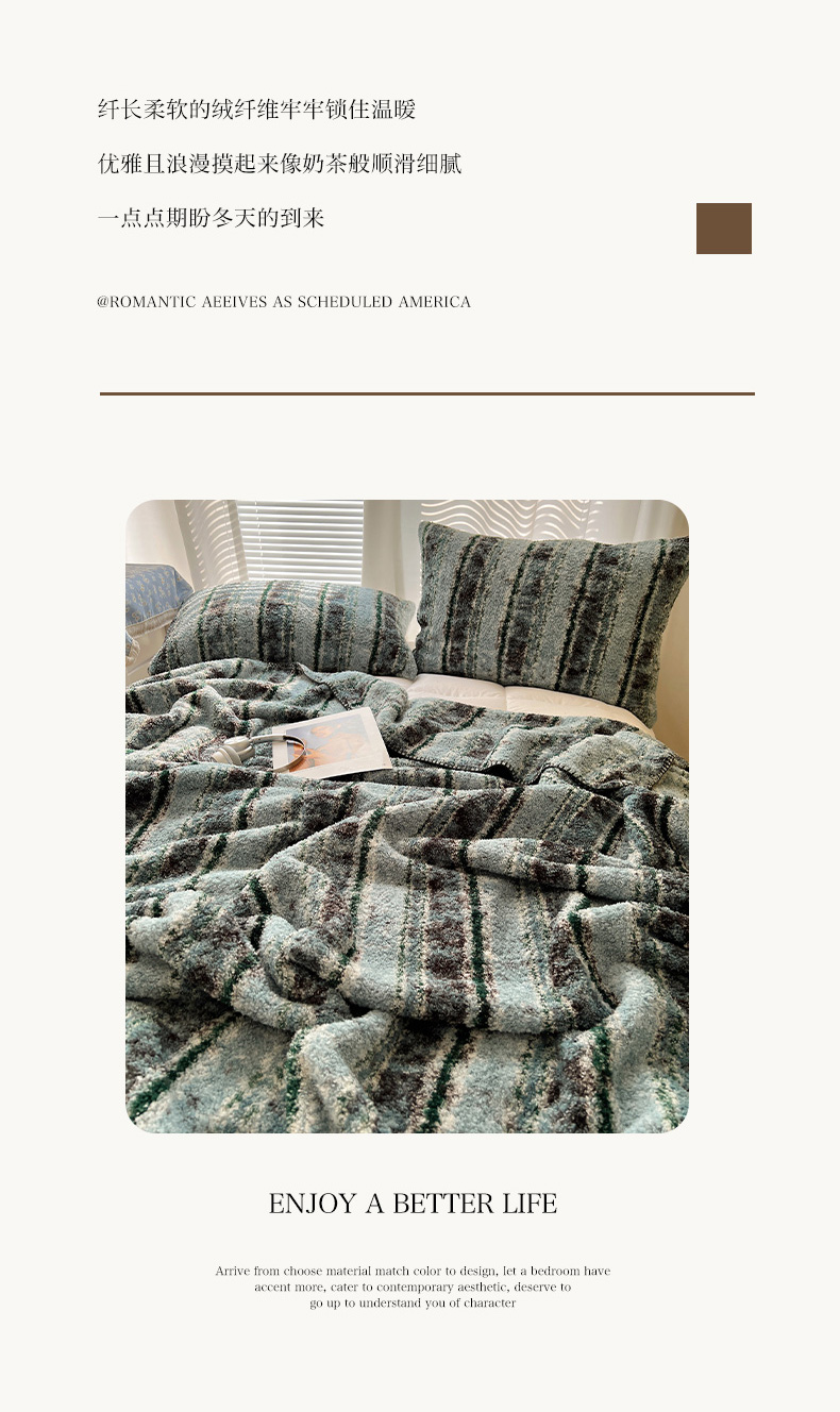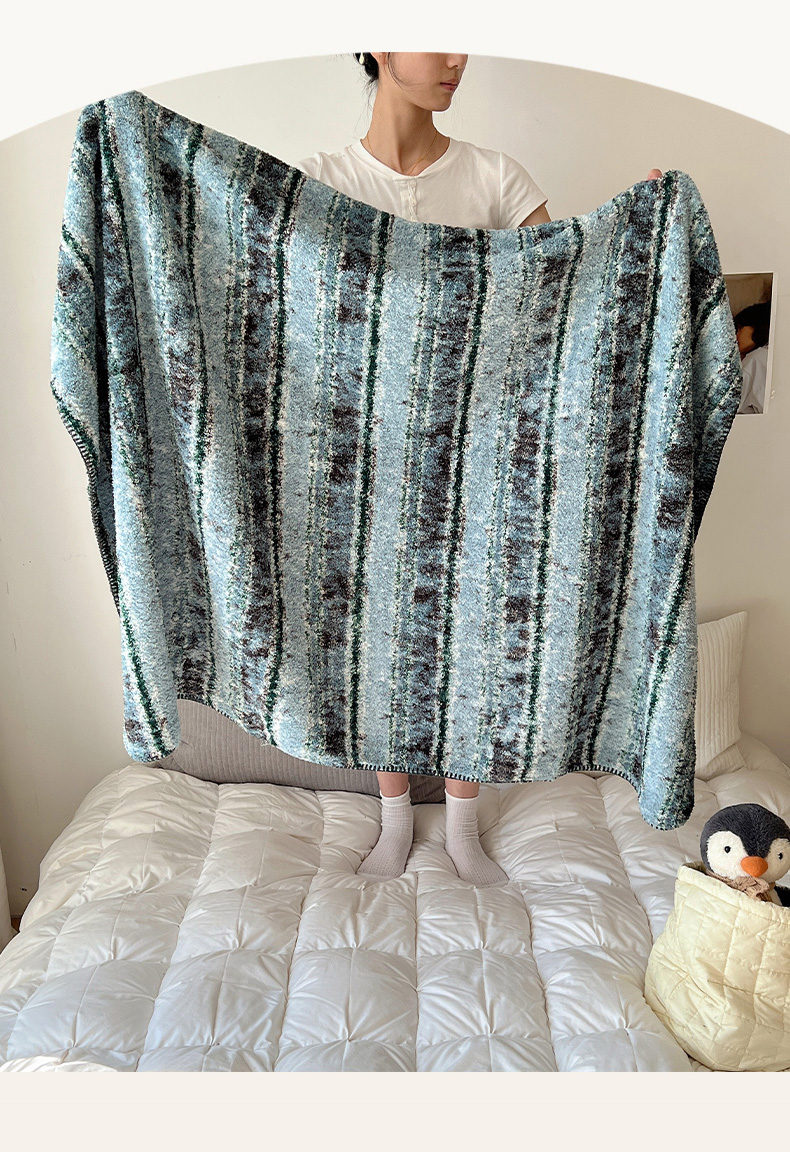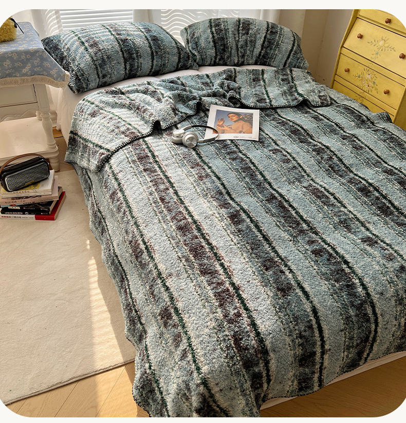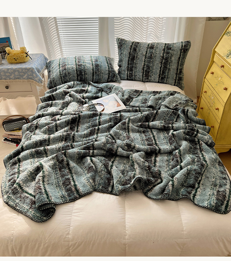 商品名称:舒隅家纺 A类高级感半边绒三角针毛毯毯子 黛弦-绿