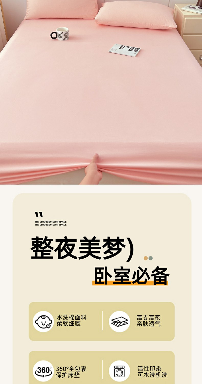 • 91家纺网 家纺一手货源 找家纺 优尚佳生活馆 2025新款亲肤水洗棉纯色单品床笠 胭脂粉