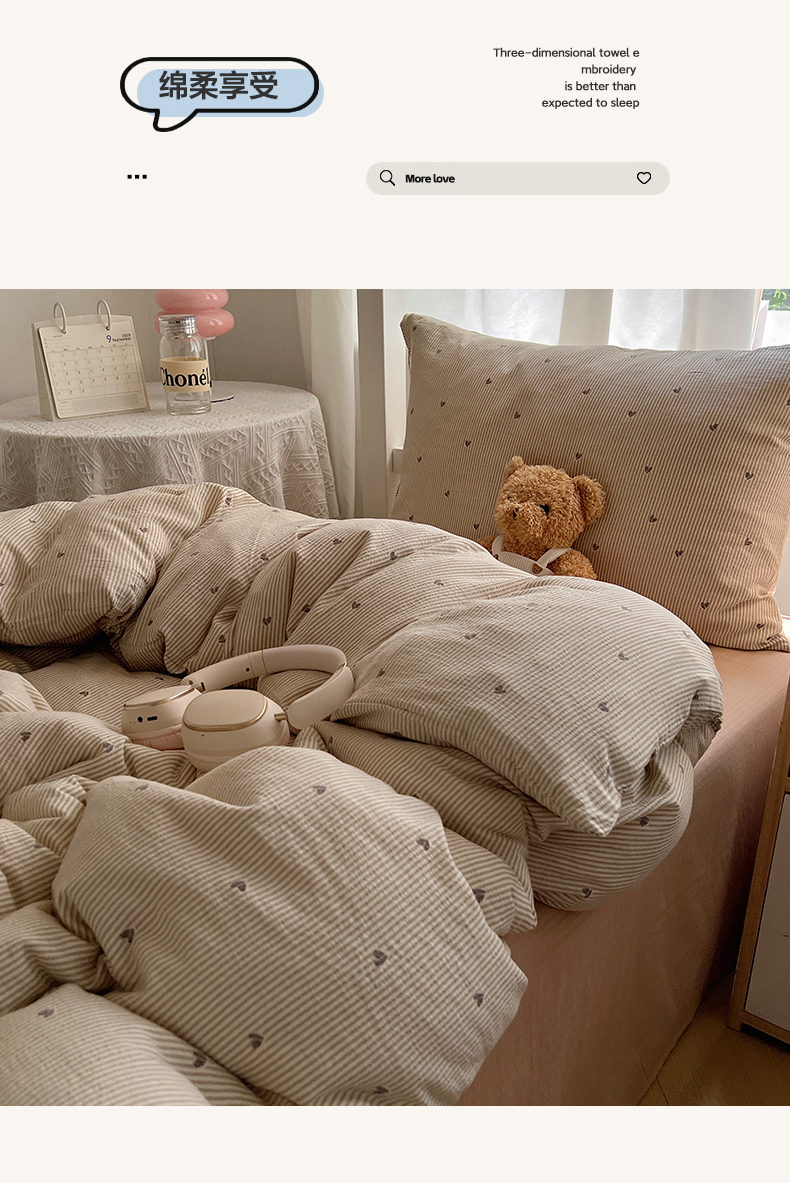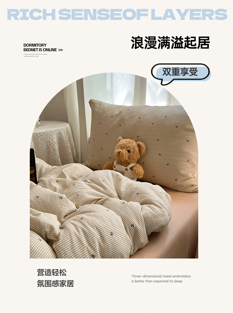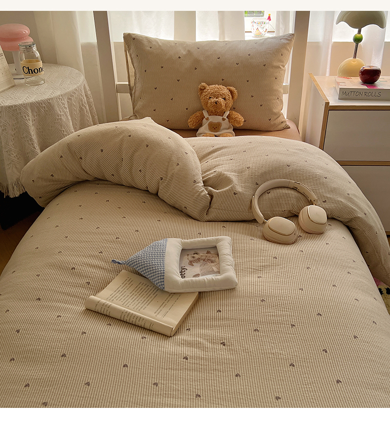 当前位置: 91家纺网 > 商品网购 > 床品套件 > 四件套 > 双层纱四件套 > 韩巢家纺 2025新款双层纱学生季床铺单件被套宿舍寝室上下铺三件套 米倾心