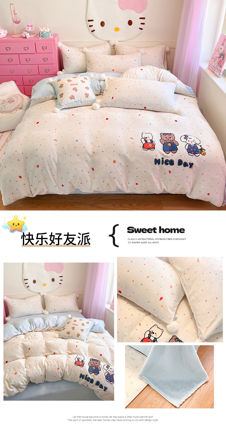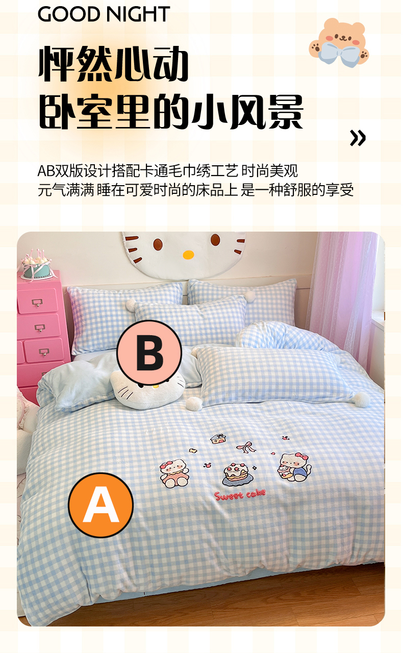 当前位置: 91家纺网 > 商品网购 > 床品套件 > 四件套 > 牛奶绒四件套 > 川悦生活 2025新款绣花牛奶绒毛巾绣四件套-大床 奶心小猫