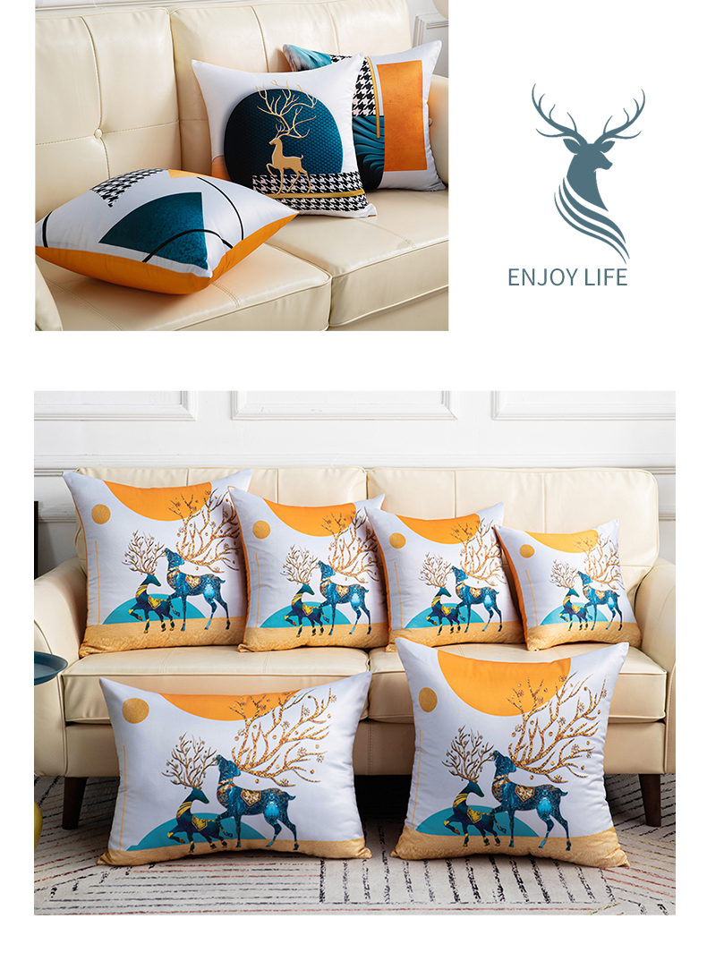 新奇异 2025新款橙色仿真丝抱枕(支持定制) 和谐麋鹿